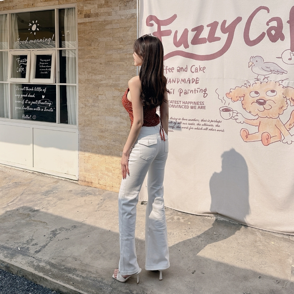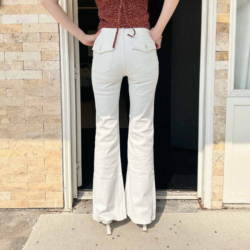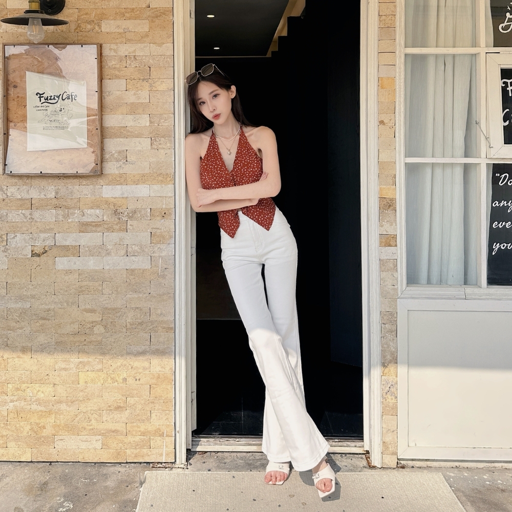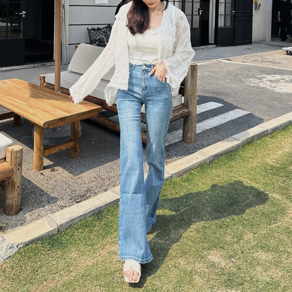 搭配微喇叭褲型,讓整體比例直接拉滿,腿長效果超明顯。
