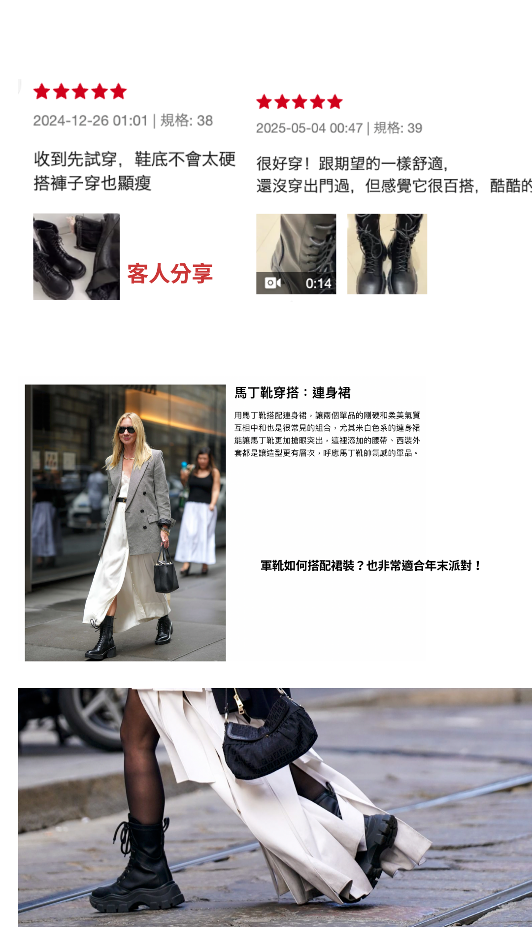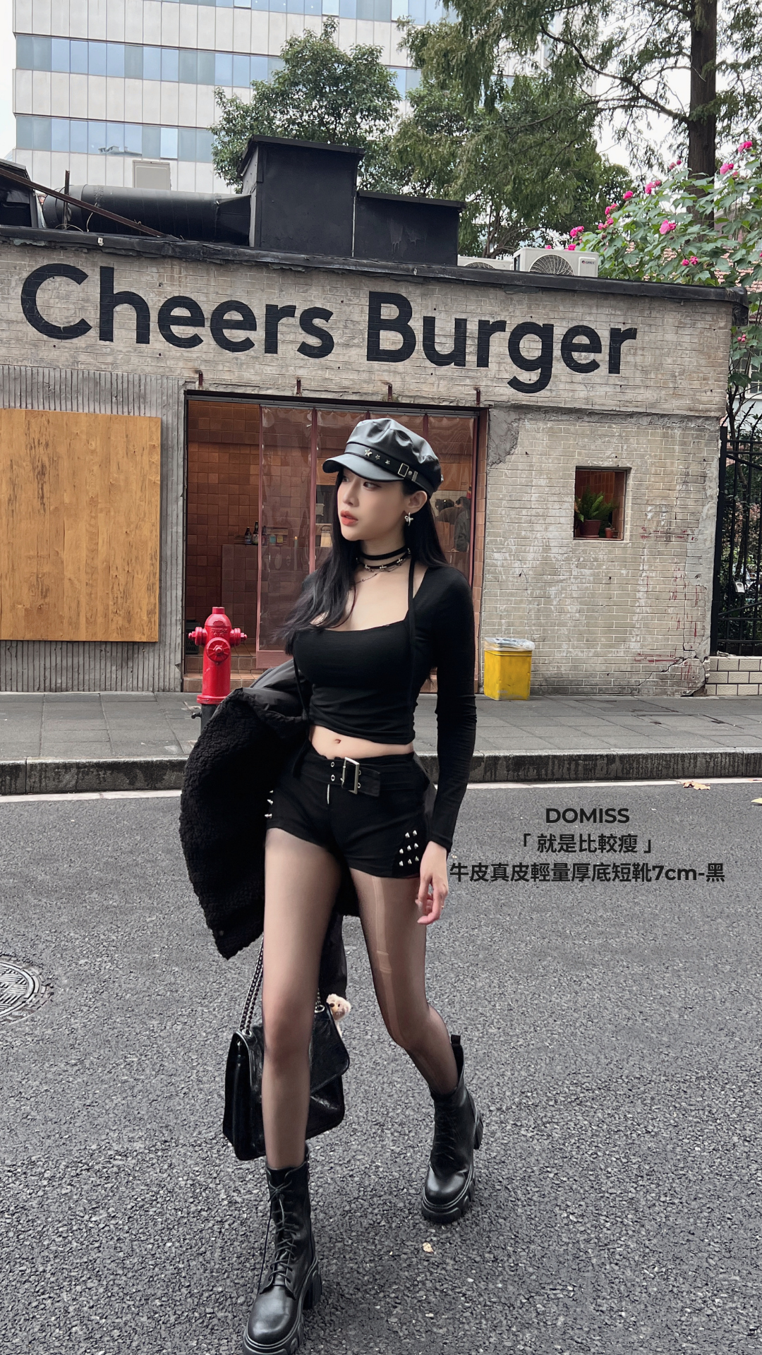 【就是比較瘦】DOMISS真皮厚底綁帶軍靴 靴子 短靴 中筒靴 長靴 牛皮 真皮 輕量 厚底短靴 7cm-黑 (現+預)