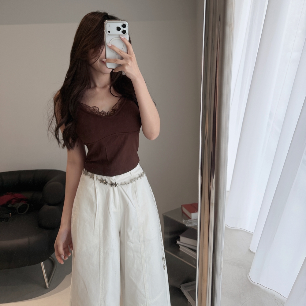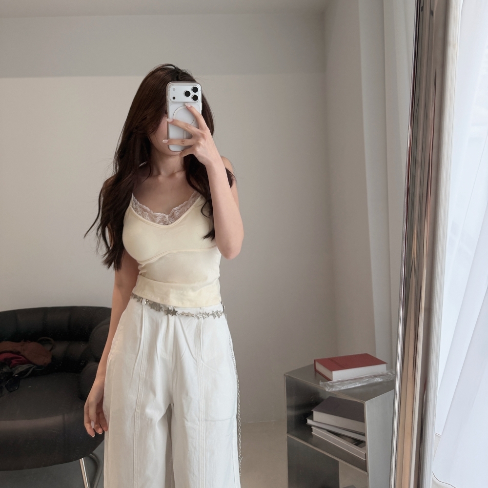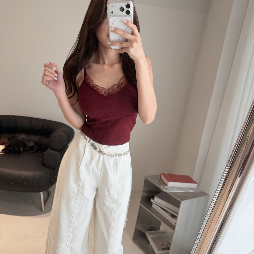 細肩帶蕾絲領口,