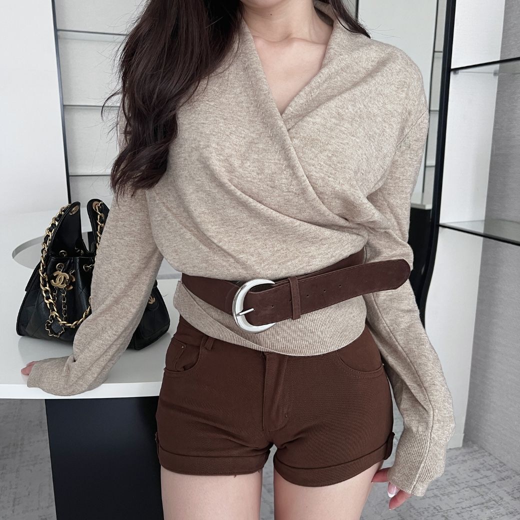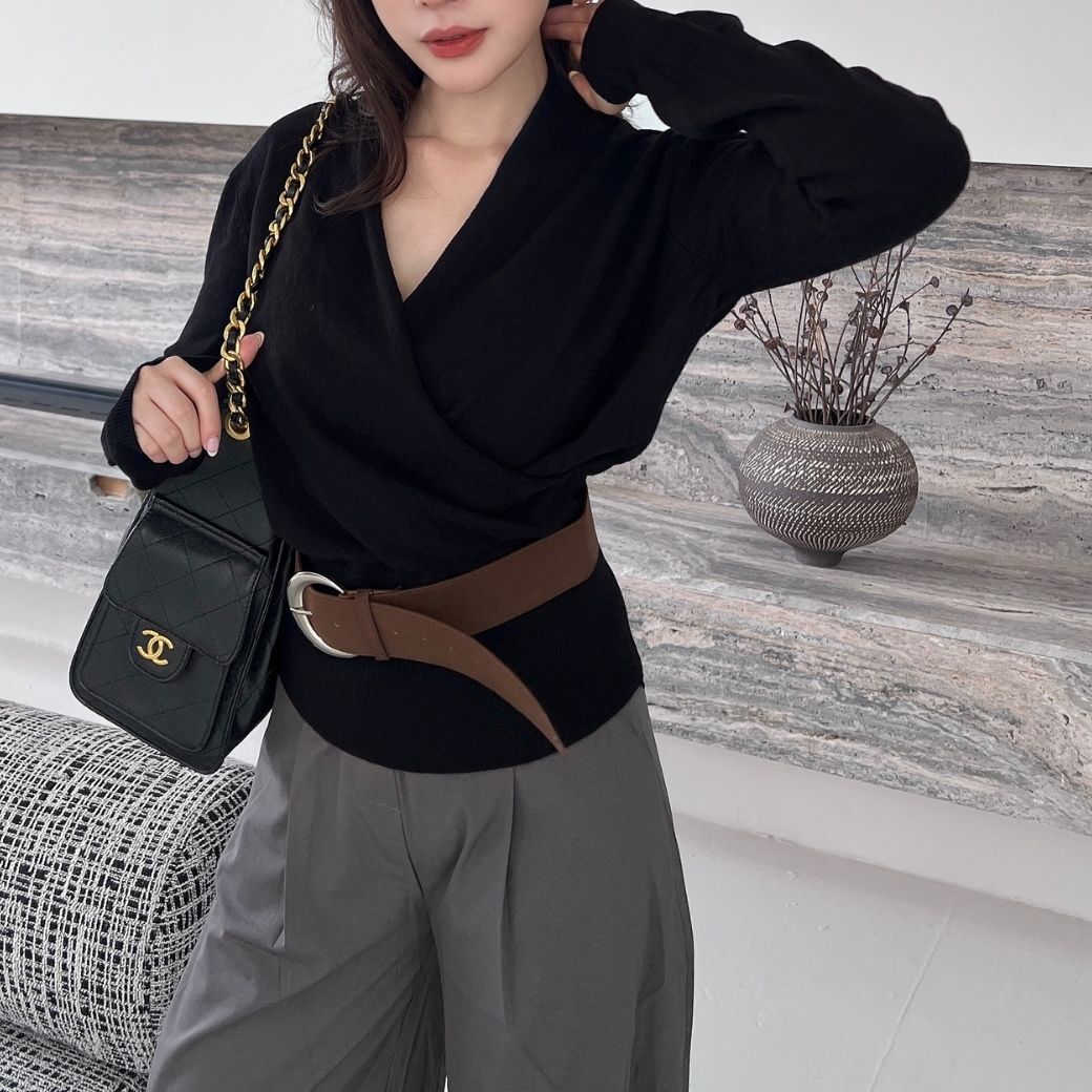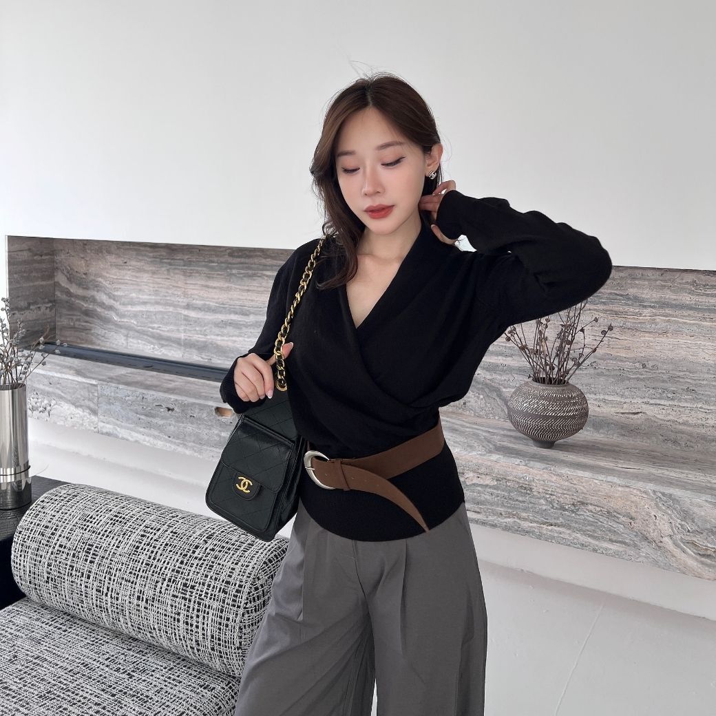 交叉粗針織高級感拉滿還有配皮帶!