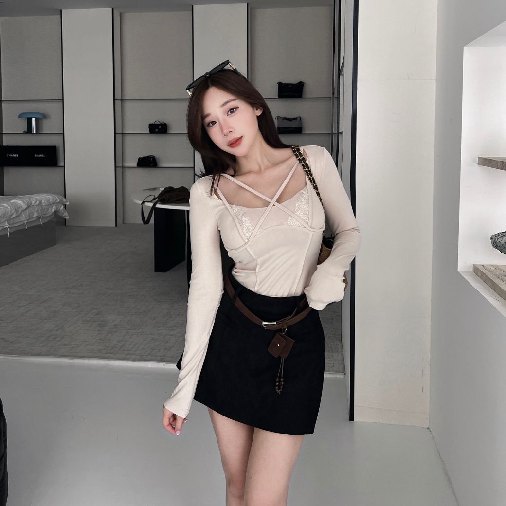 交叉設計拉長肩頸線條,蕾絲細節增添性感氛圍,