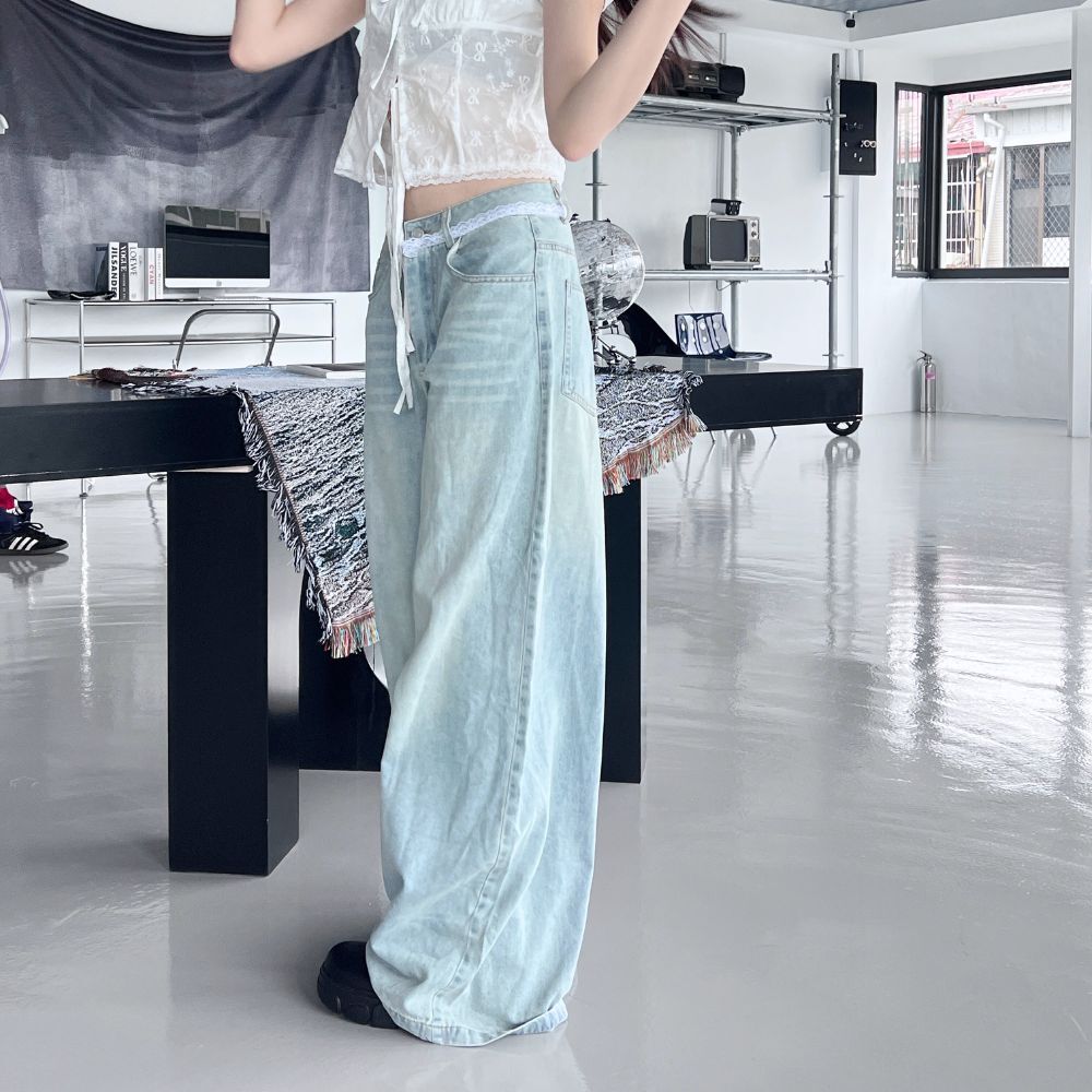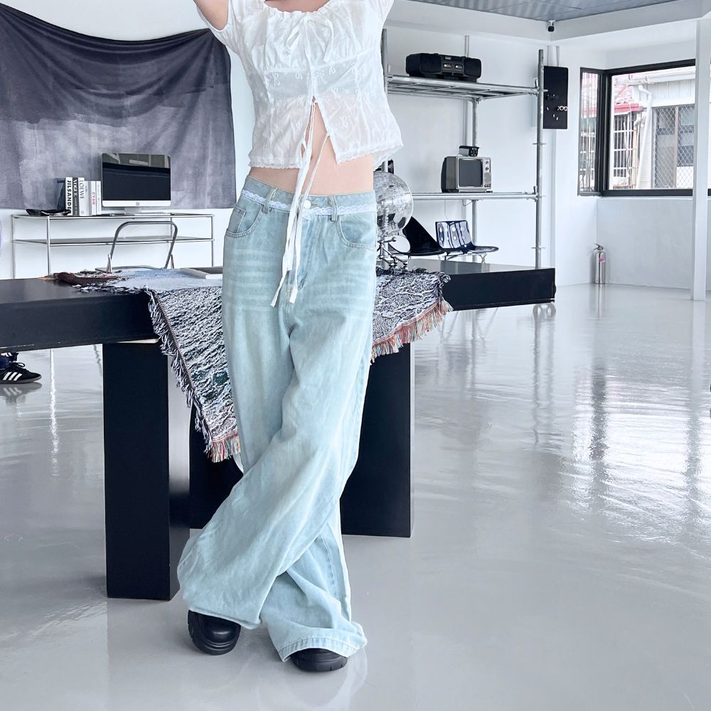 上衣是短版寬鬆剪裁,下身是高腰垂墜喇叭褲,