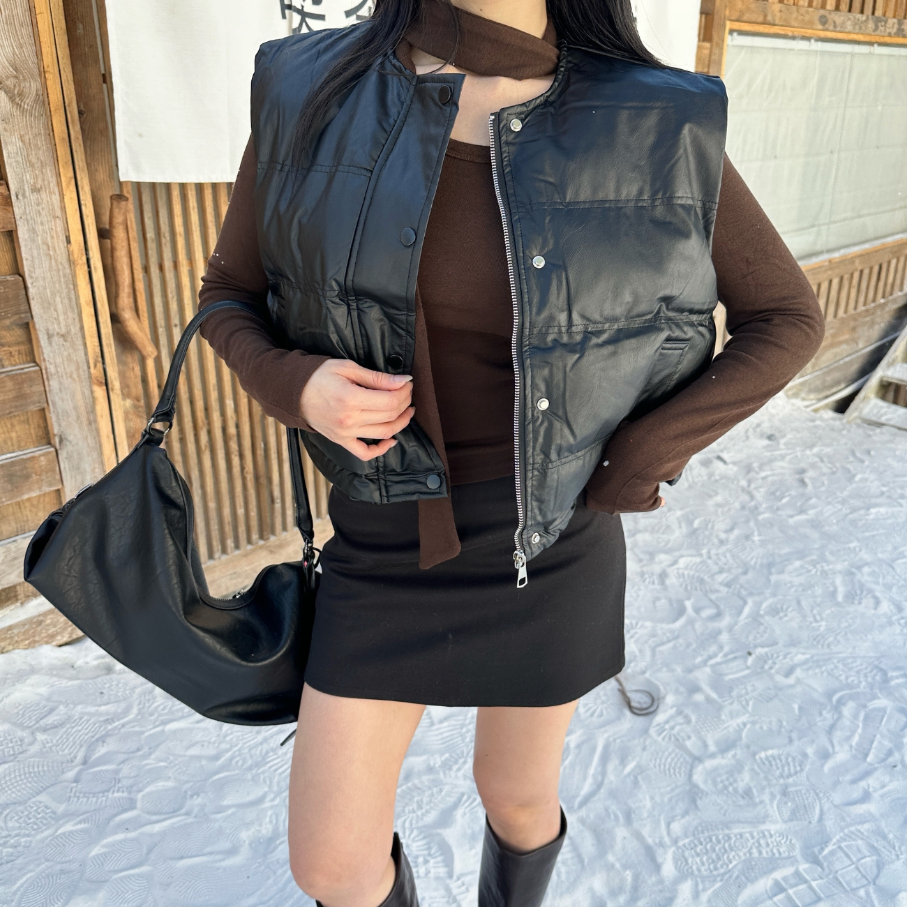 疊在發熱上衣、針織或皮衣外