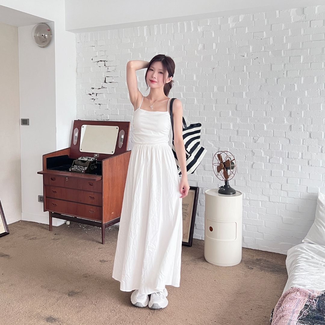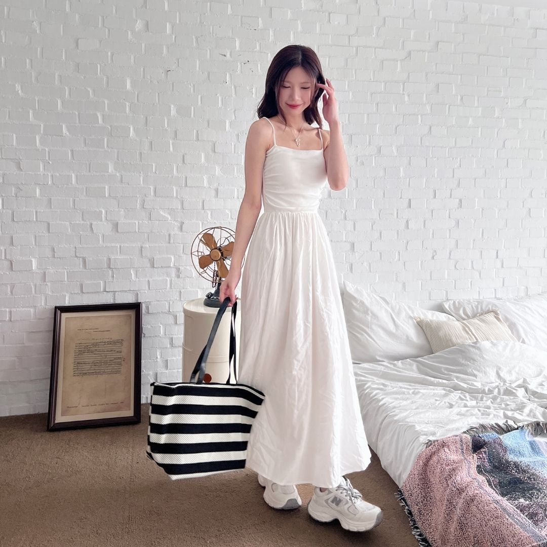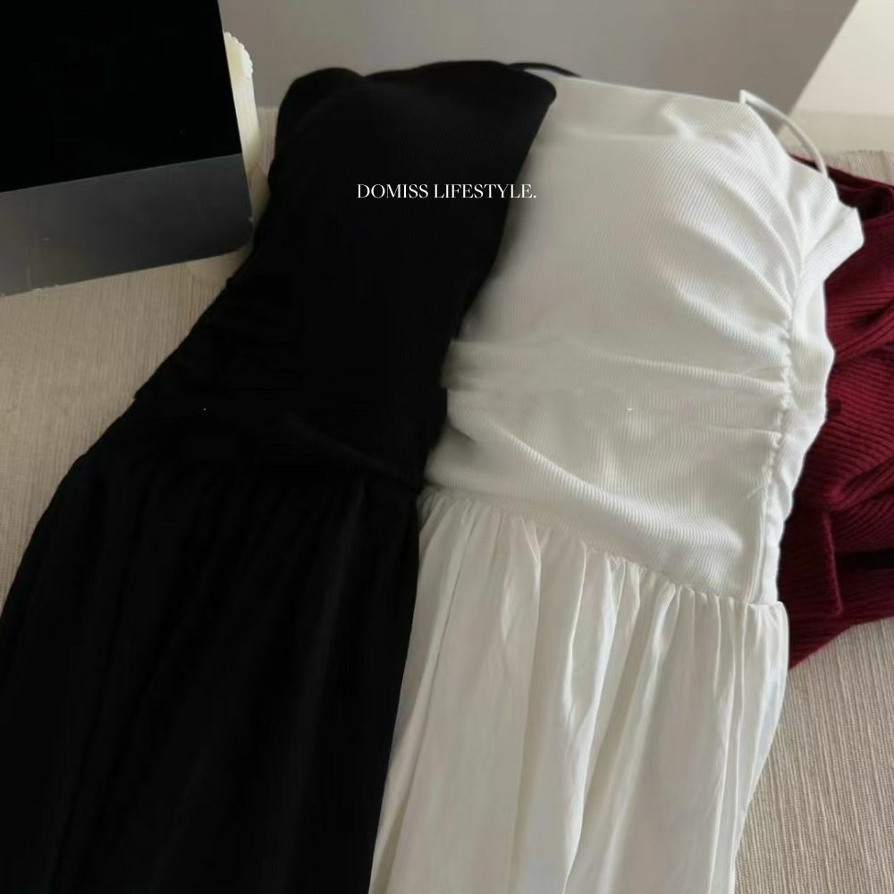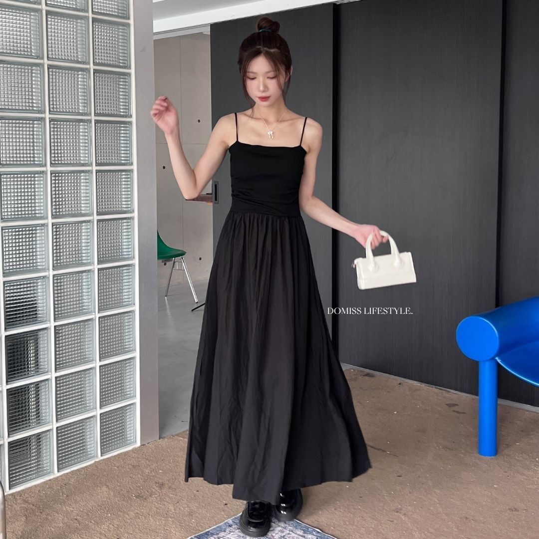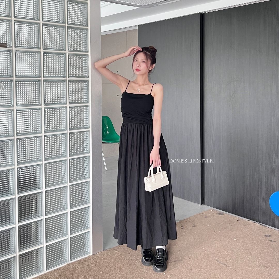 DOMISS春夏爆款! 不挑人! 棉麻拼接吊帶平口洋裝-2色