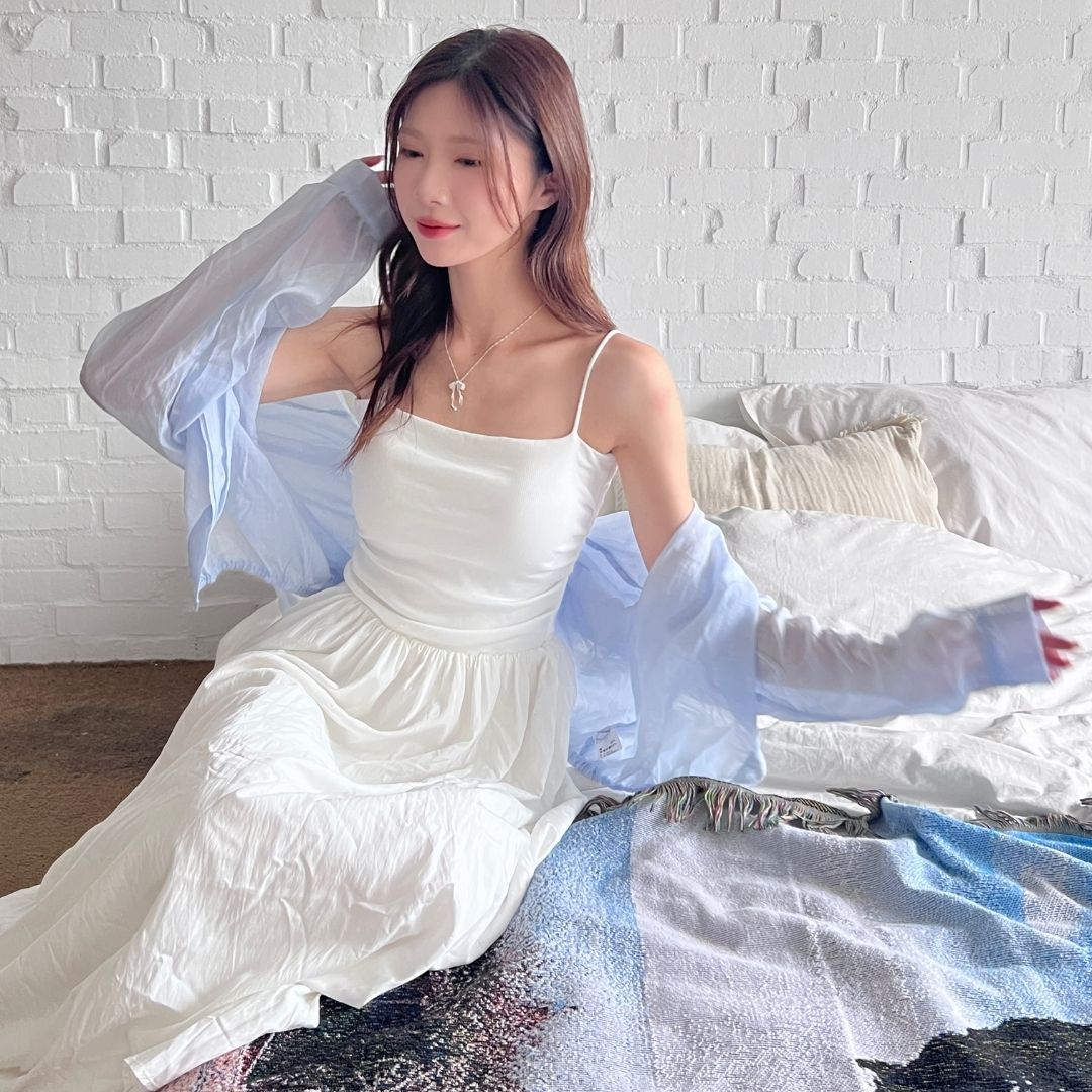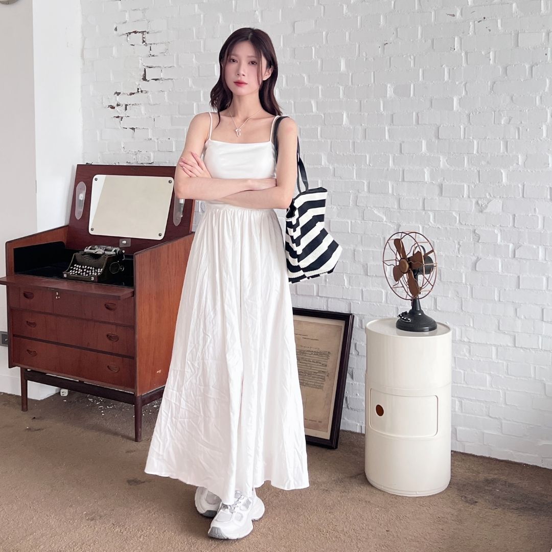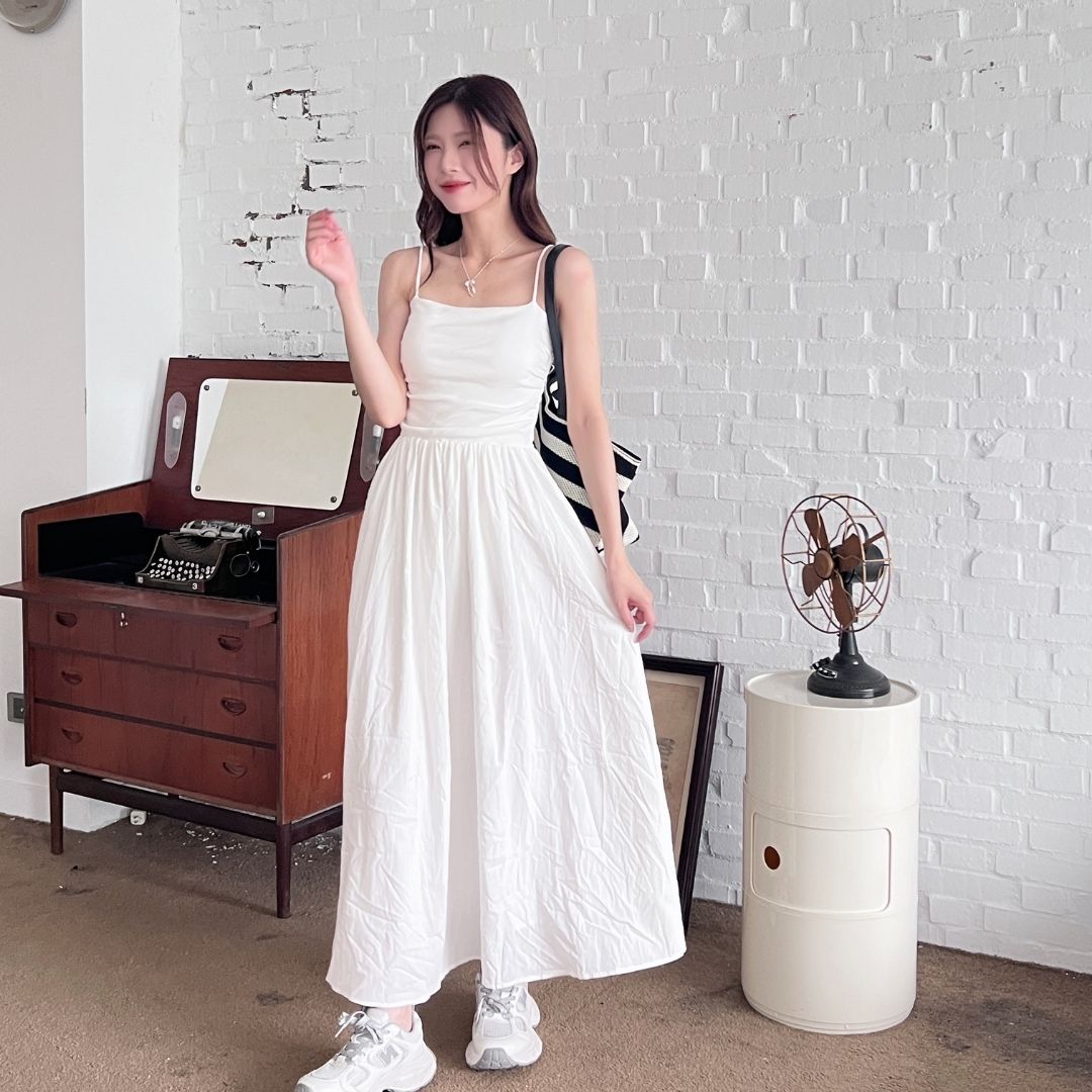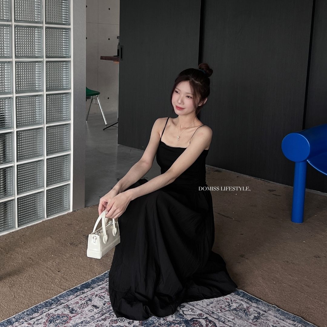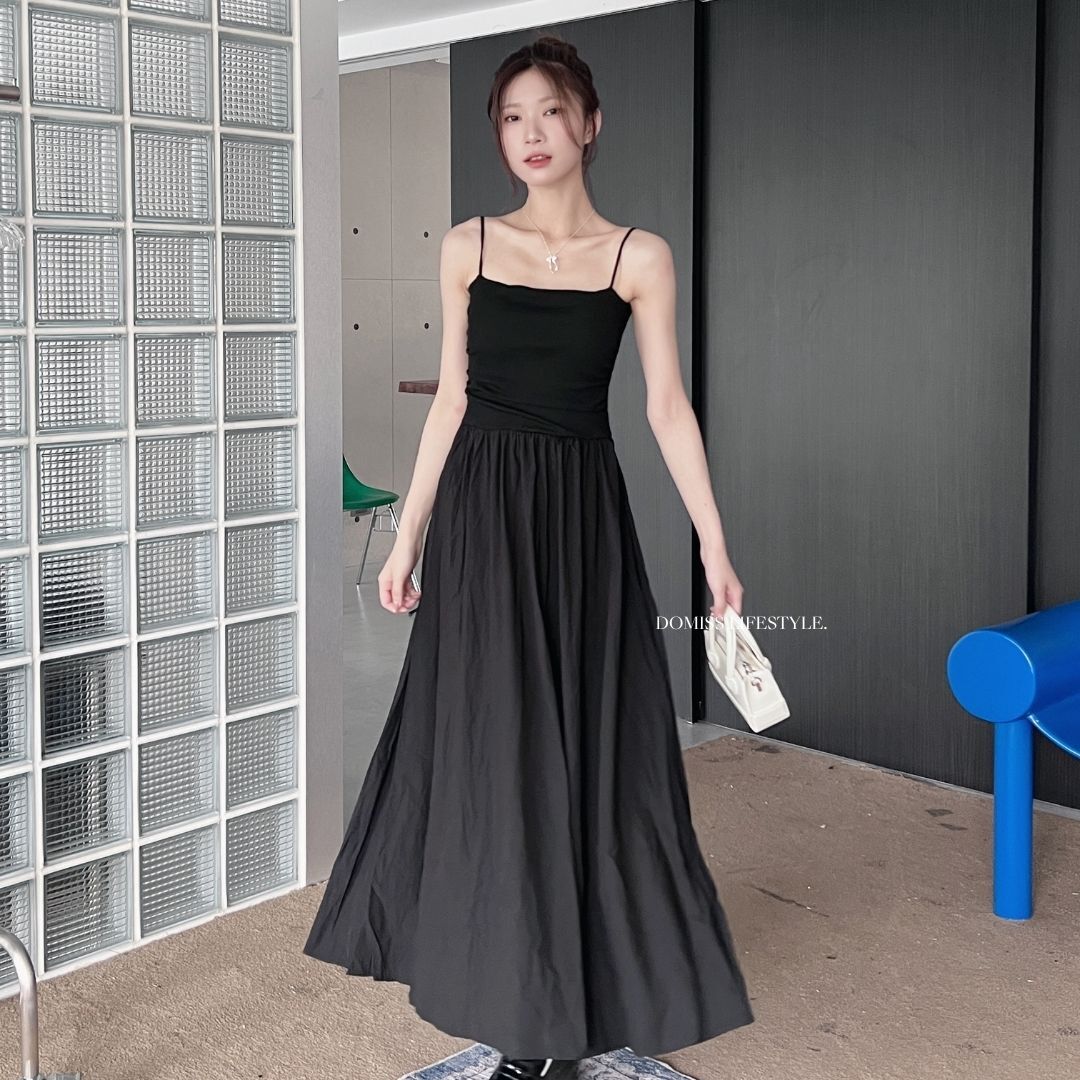 DOMISS春夏爆款! 不挑人! 棉麻拼接吊帶平口洋裝-2色