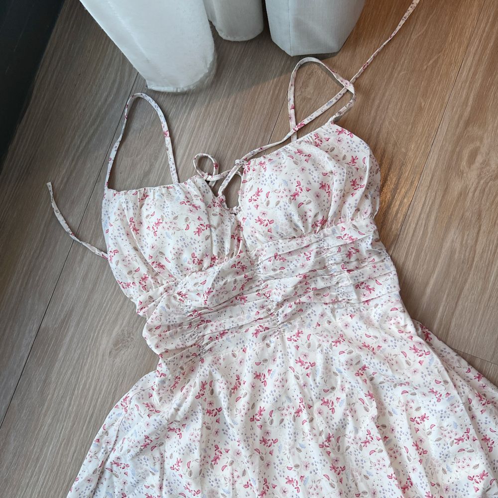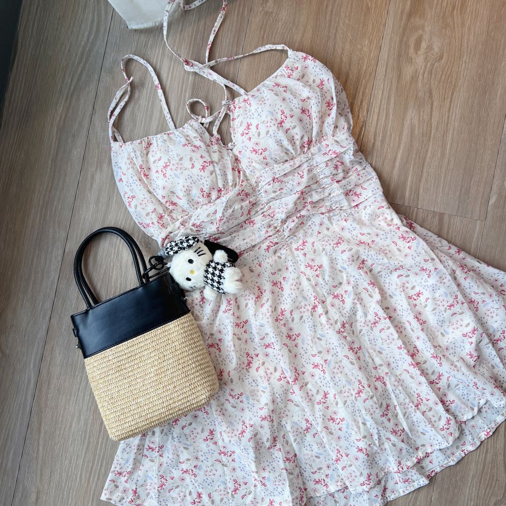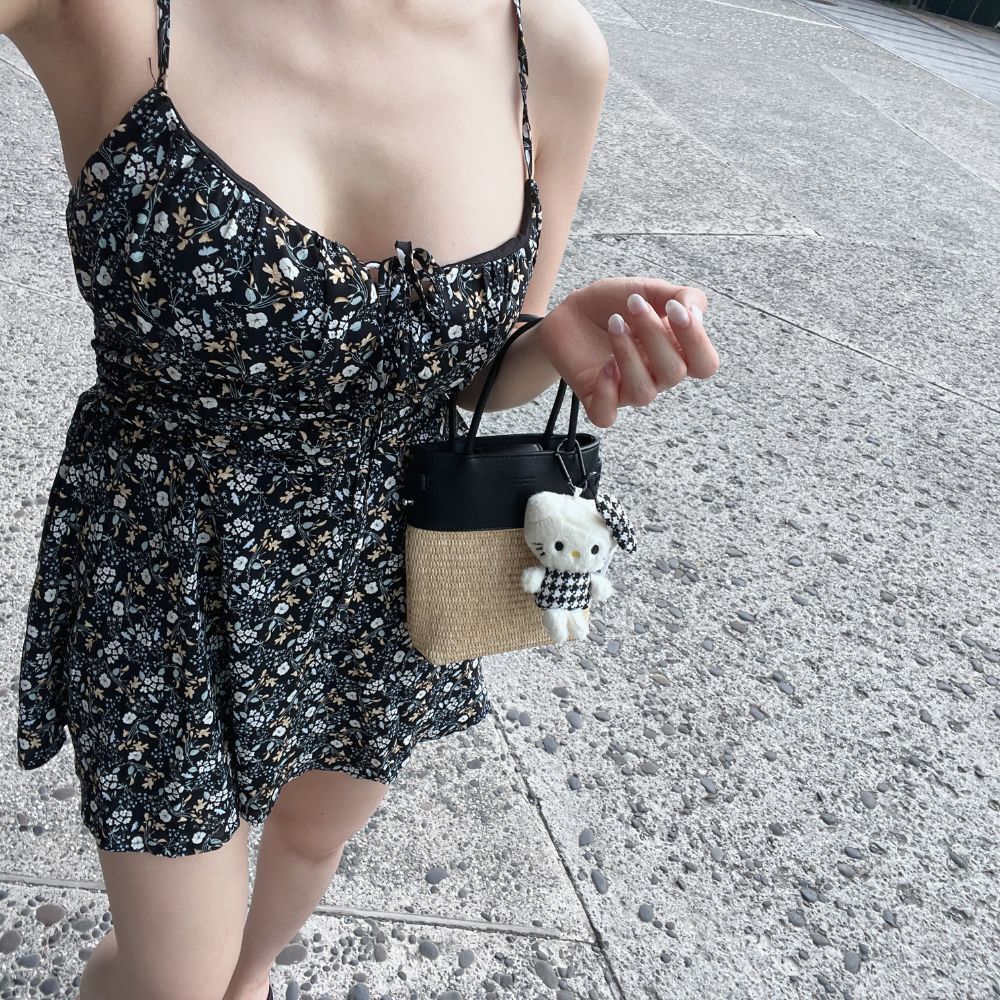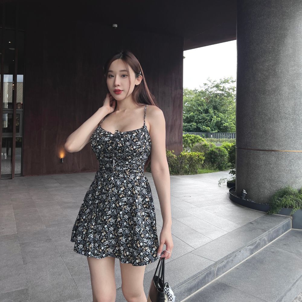 細肩帶+胸前抓皺設計,讓身形線條更乾淨俐落