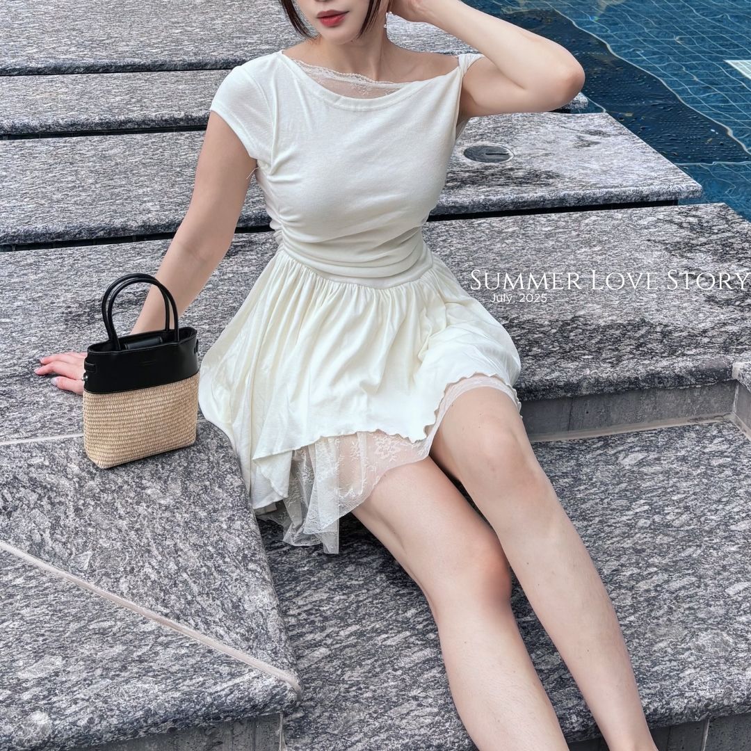 🍦 下擺拼接蕾絲精緻加分