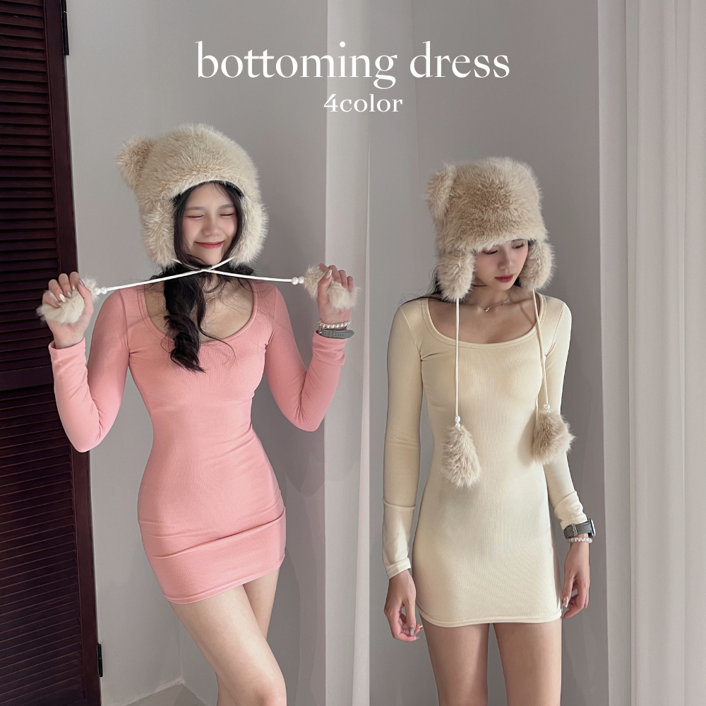 純欲風保暖方領長袖洋裝