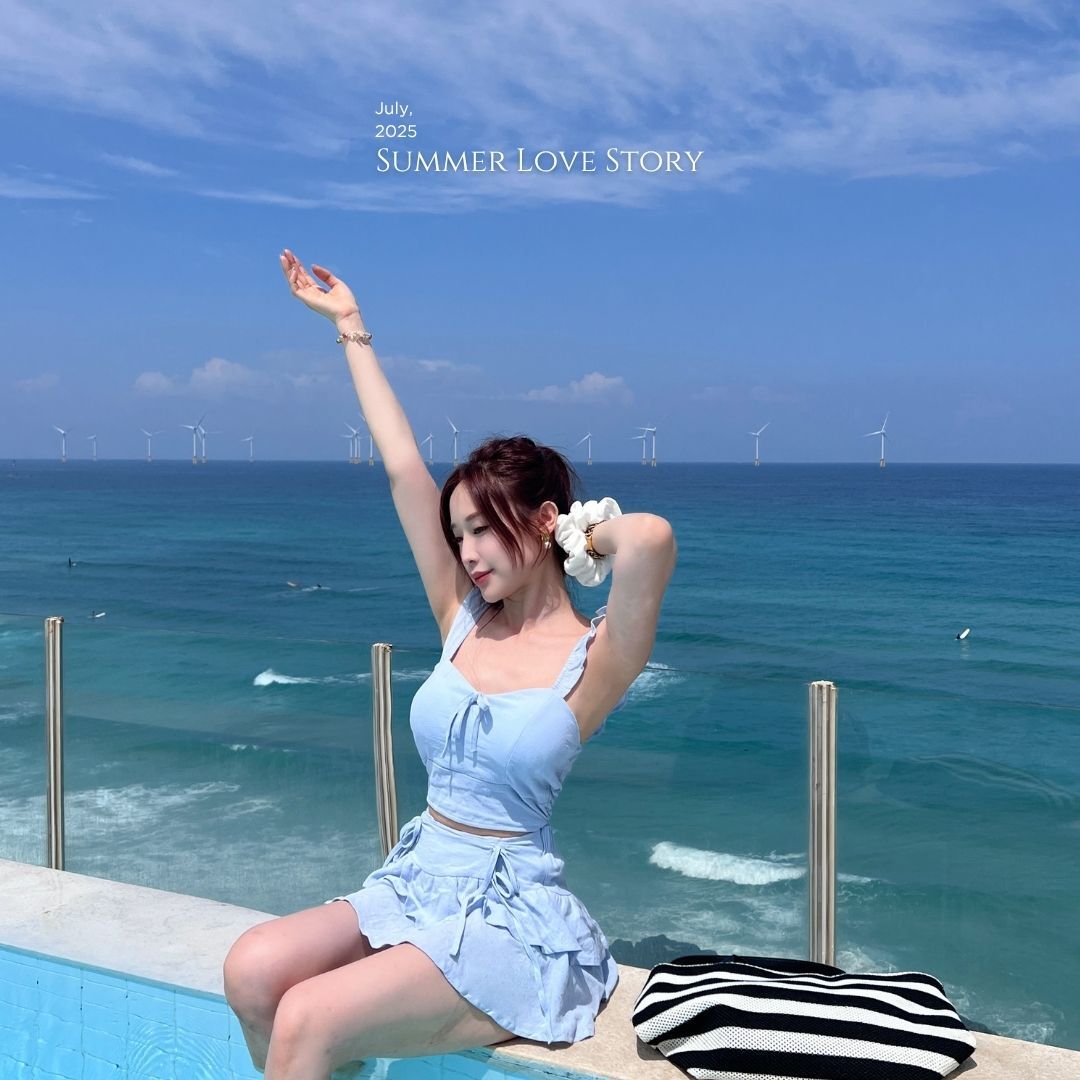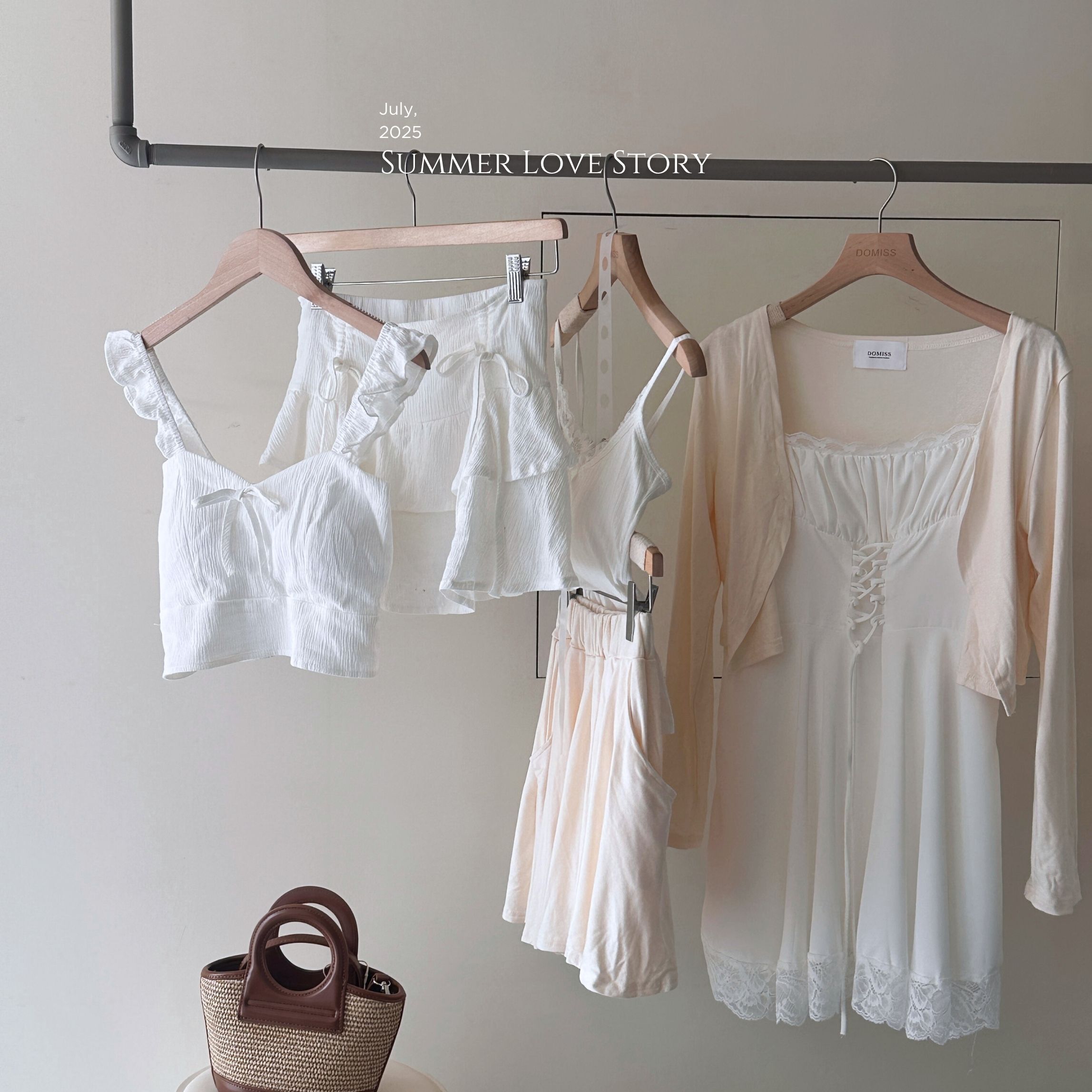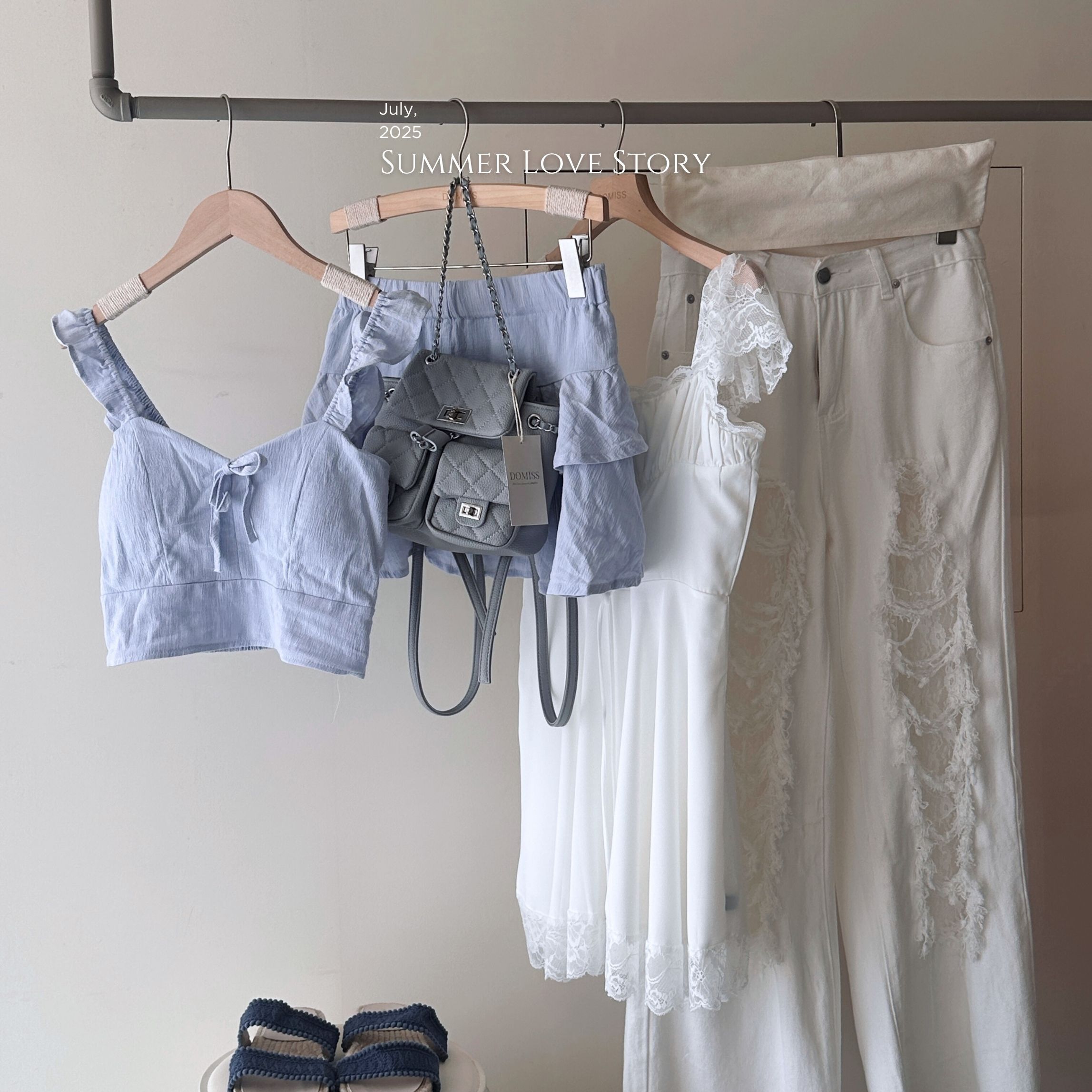 🌊 上身是微辣的小吊帶設計,搭配荷葉邊甜感拉滿,
