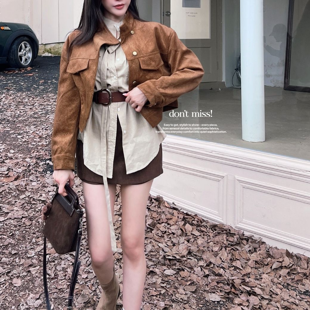 微短版剪裁剛好露出腰線,修飾比例又不壓身高。