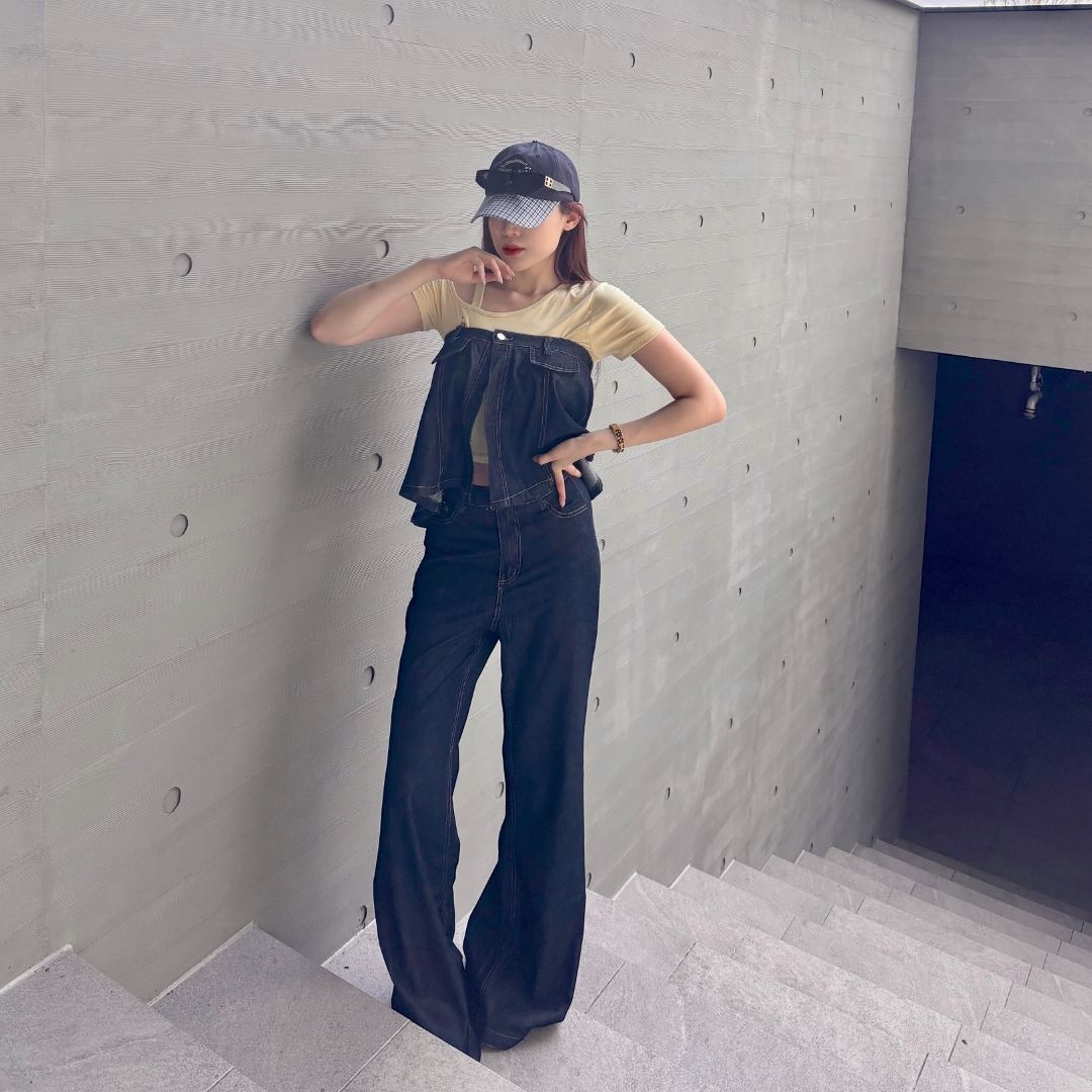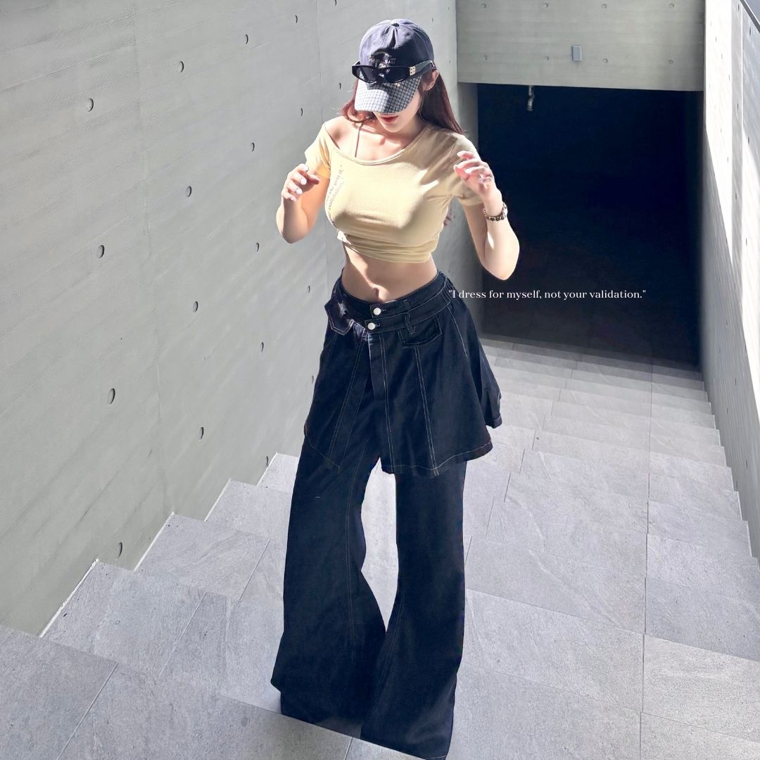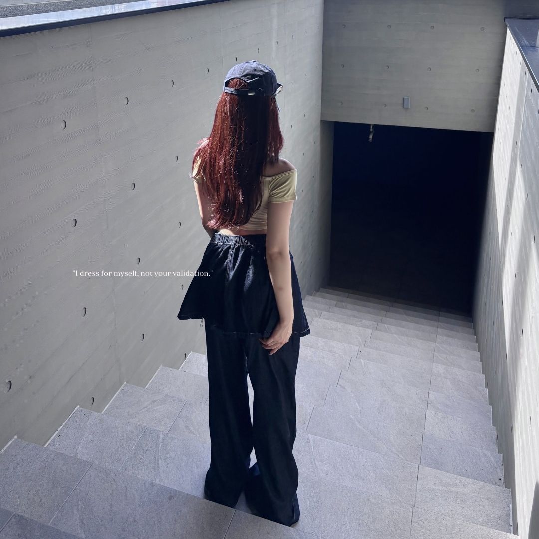 👖 前裙拼接 × 高腰直筒褲,顯瘦+腿長都滿分