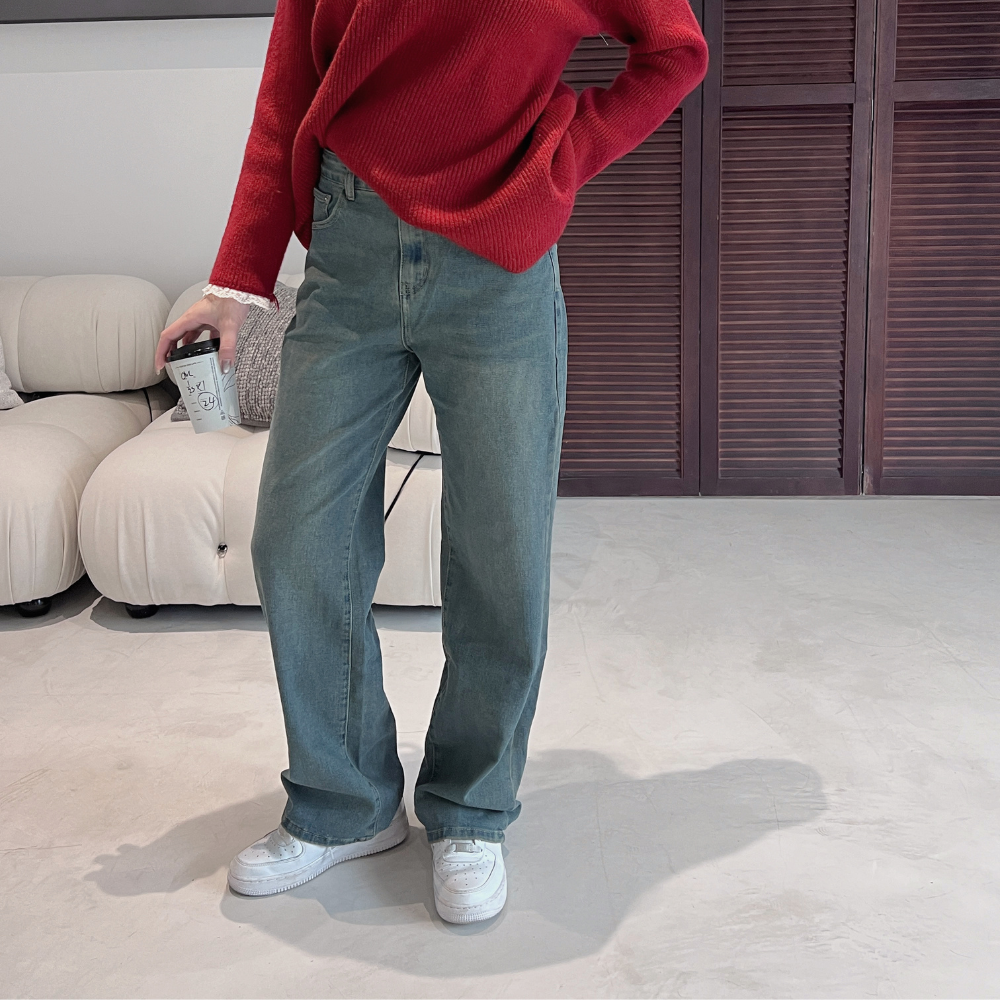 刷色直筒長褲" 復古風格和現代時尚感的褲子