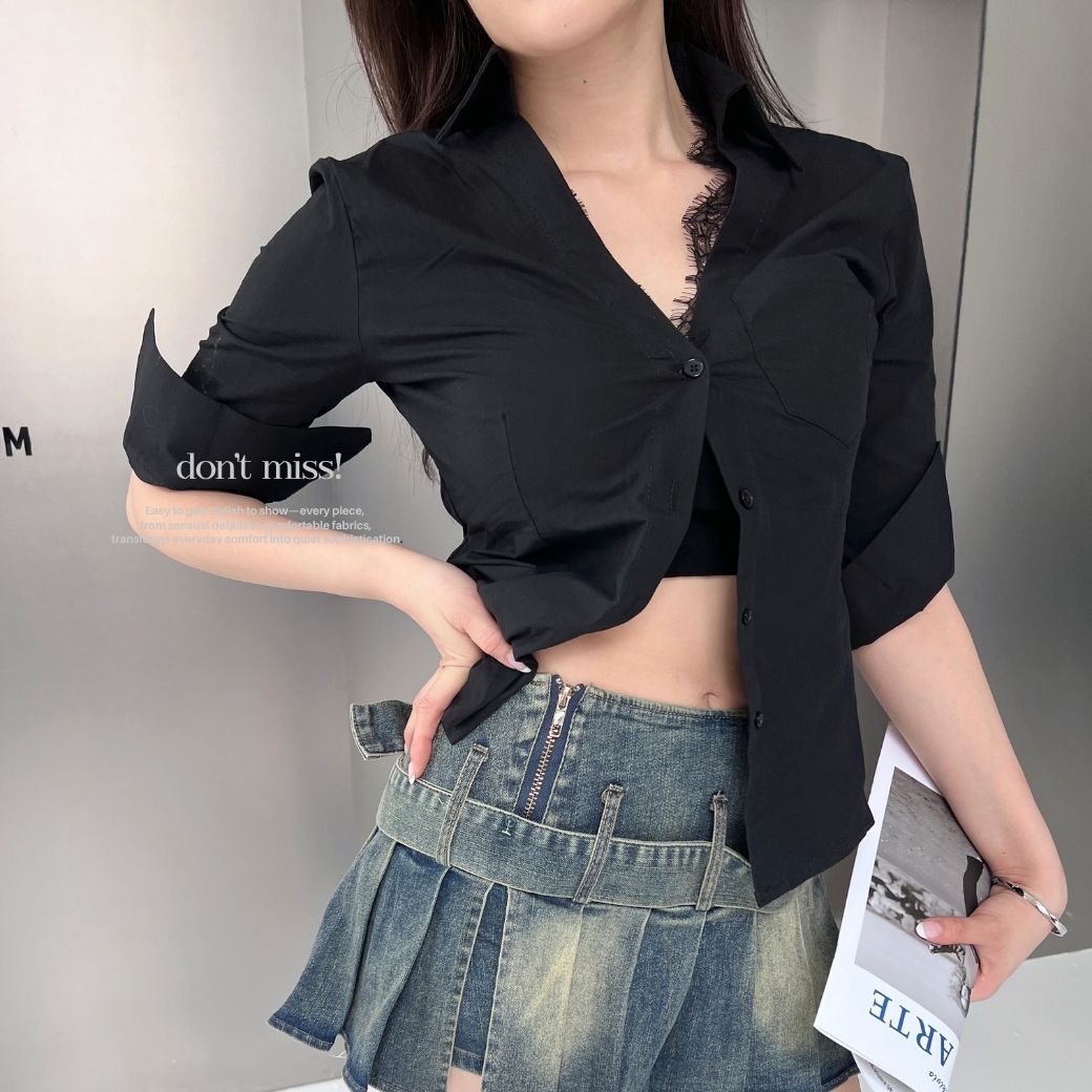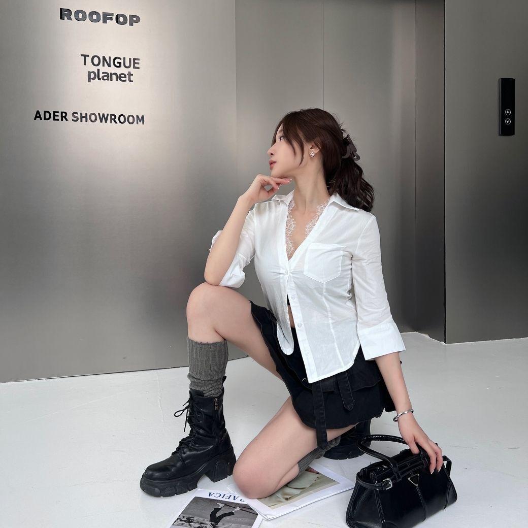 ✔ 蕾絲領口細節,氣質+辣剛剛好