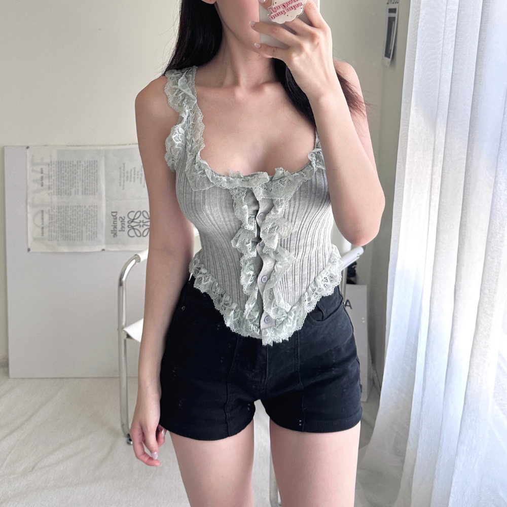 【純欲領袖】DOMISS蕾絲無袖吊帶針織背心-3色 針織背心(現貨)