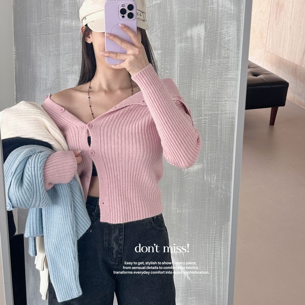 非對稱開襟+貼身剪裁,修飾肩頸線條又不失小辣妹感。