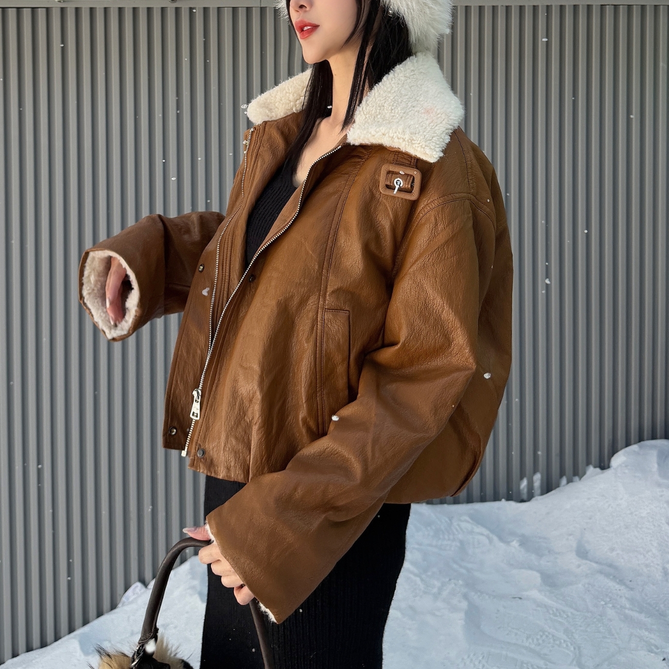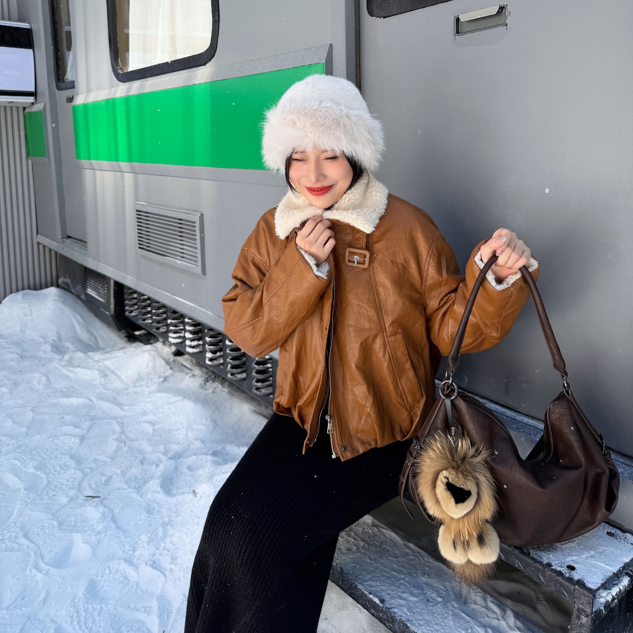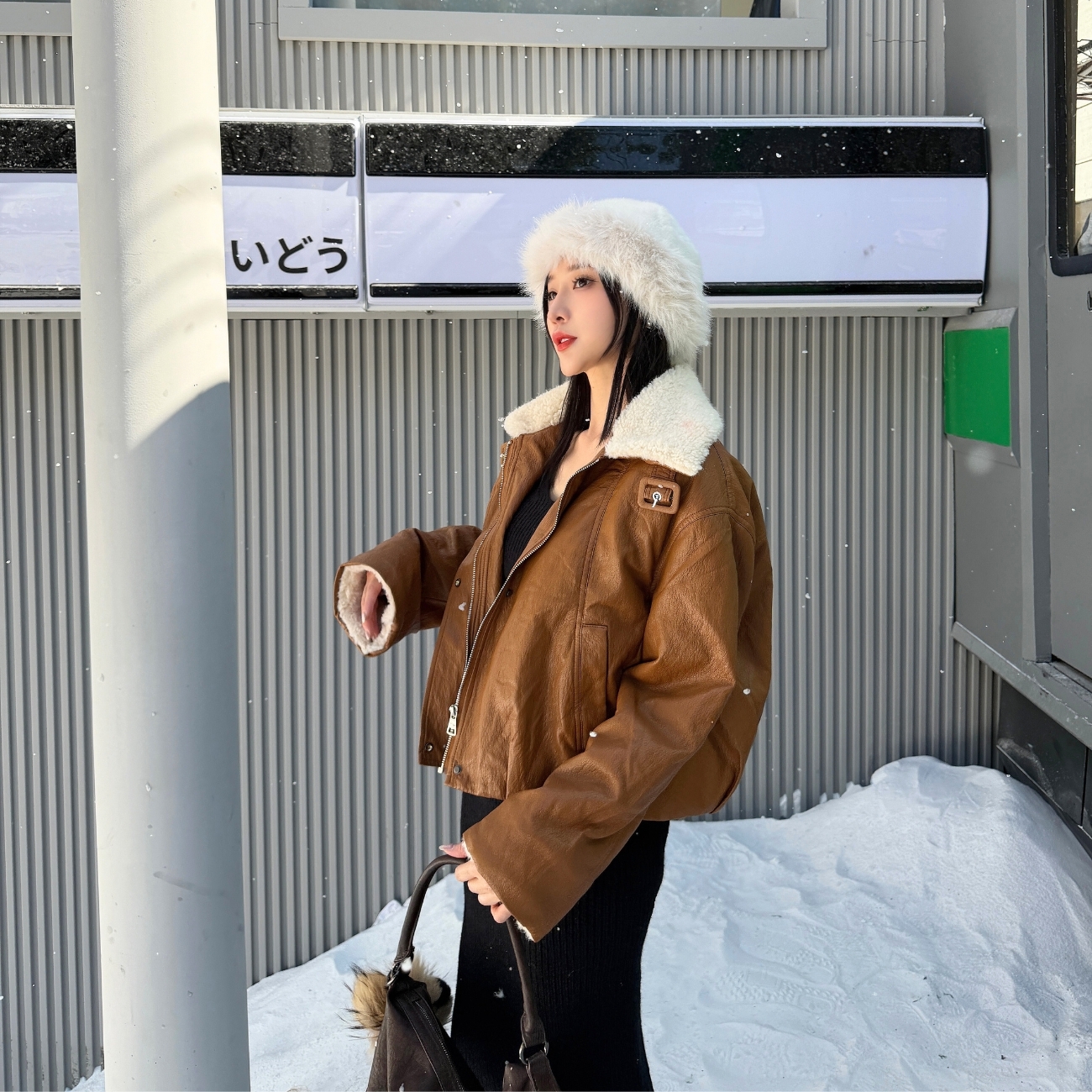 皮革+羊羔毛拼接又暖又顯瘦♡冷天最想要的
