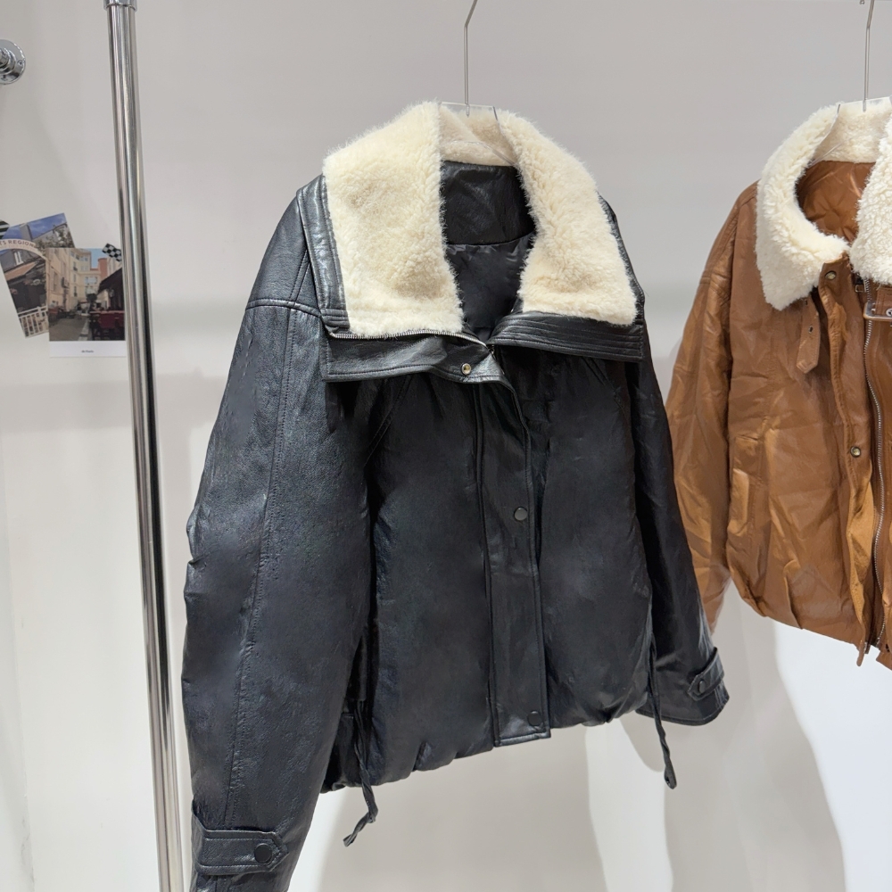 皮革+羊羔毛拼接又暖又顯瘦♡冷天最想要的