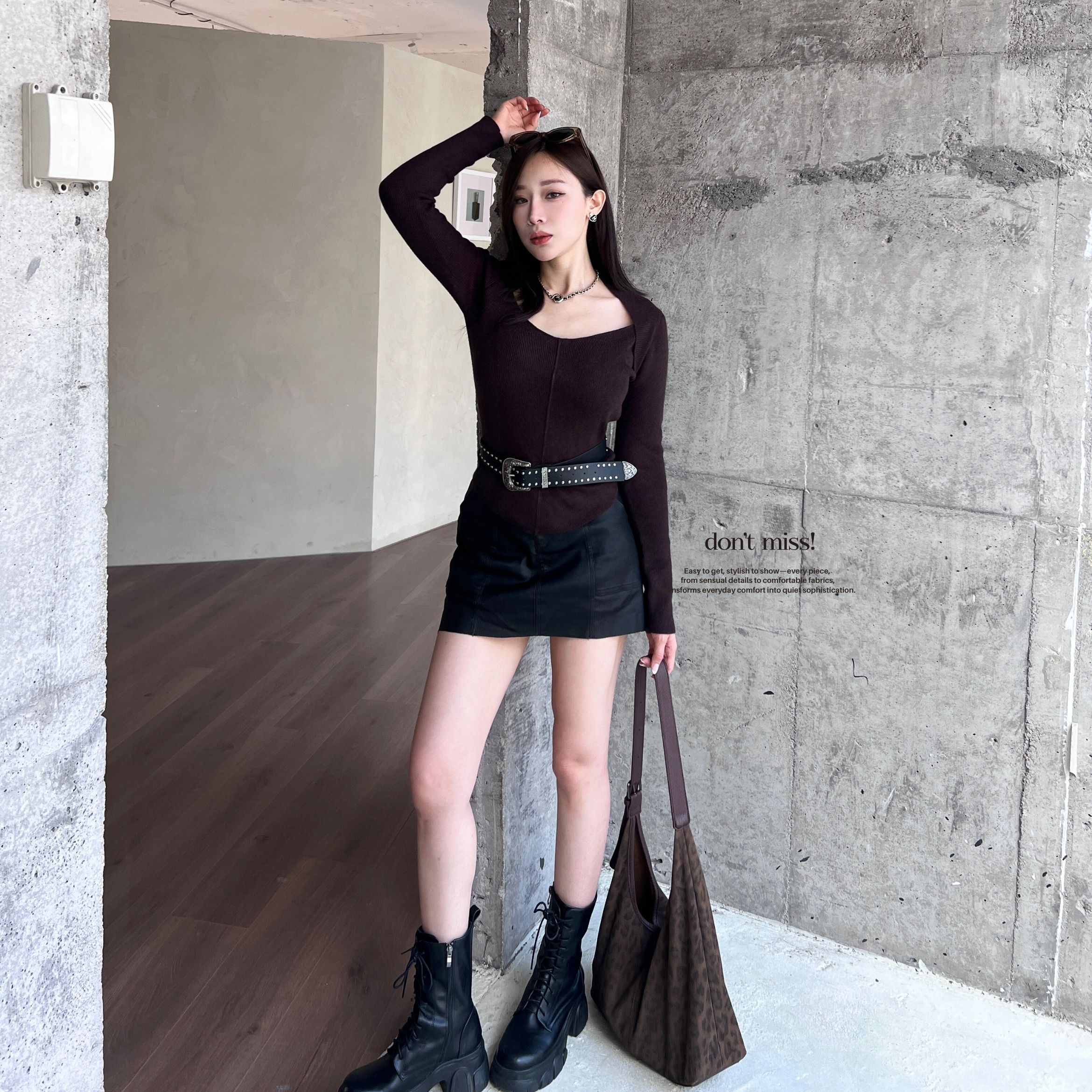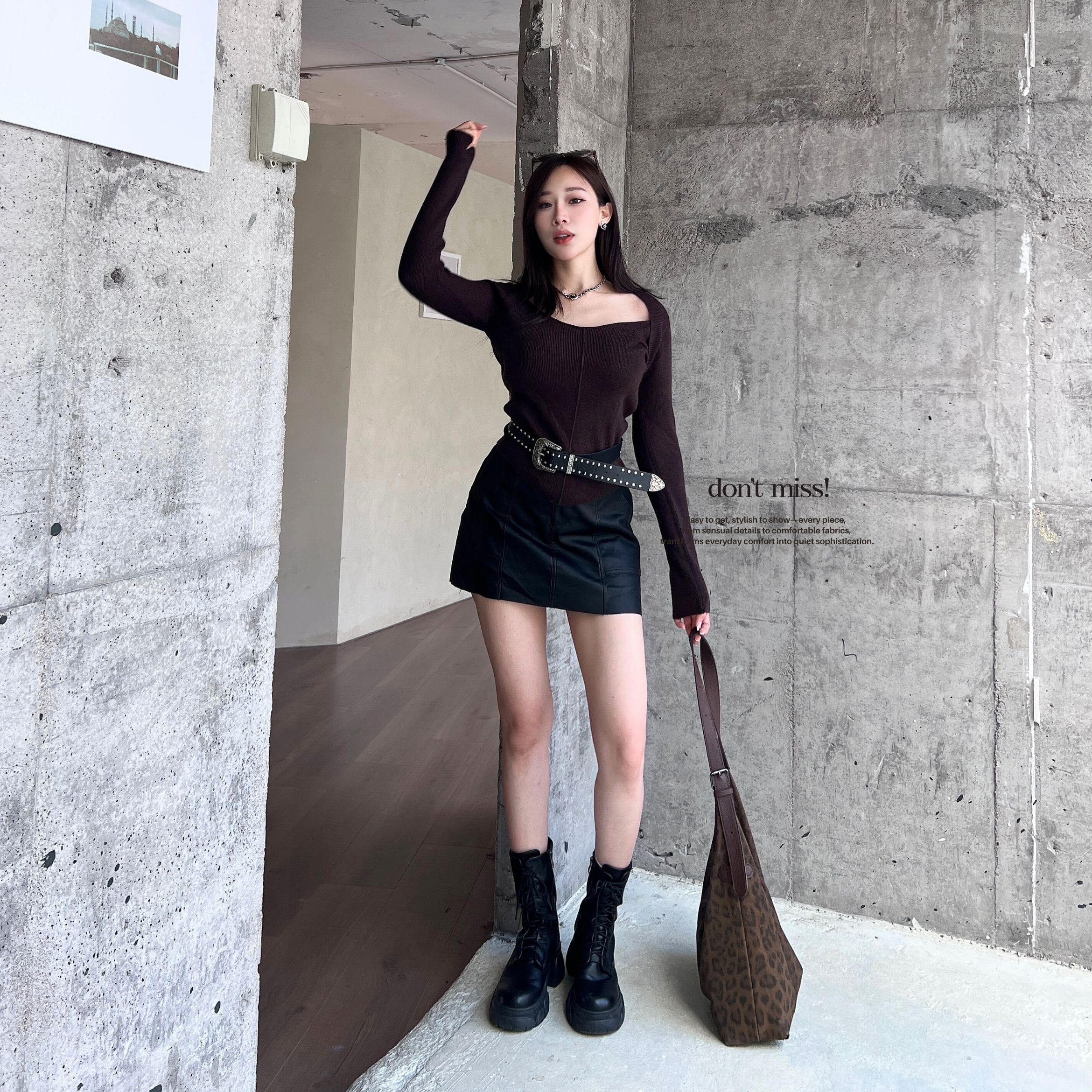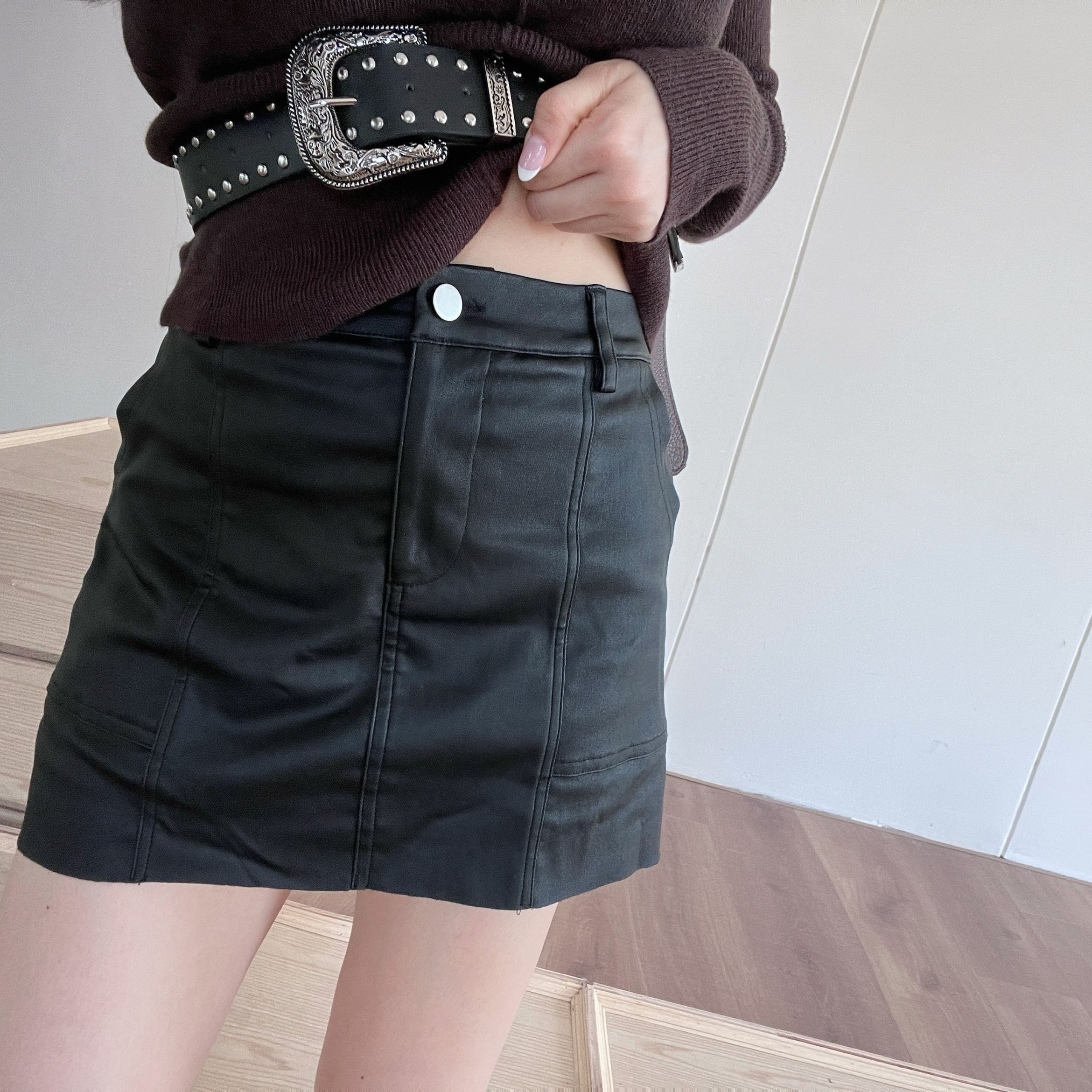 DOMISS韓國霧感後鬆緊口袋皮褲裙 🖤