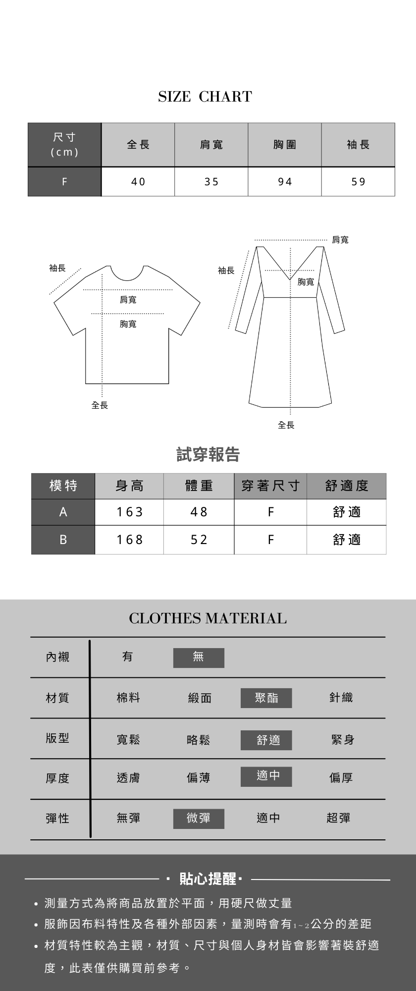 <尺寸> F 全長40 肩寬35 胸圍94 袖長59 cm