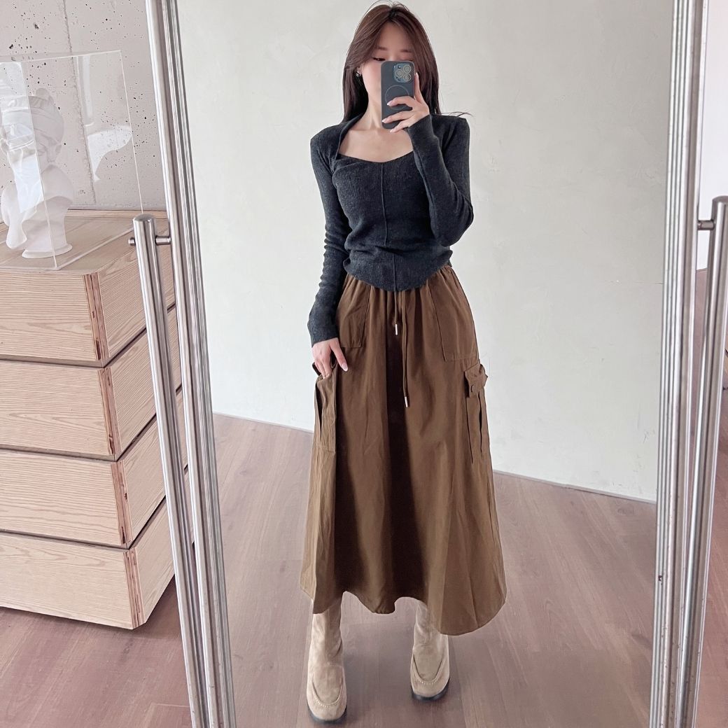 是那種一穿就變“很會穿”的俐落工裝裙。
