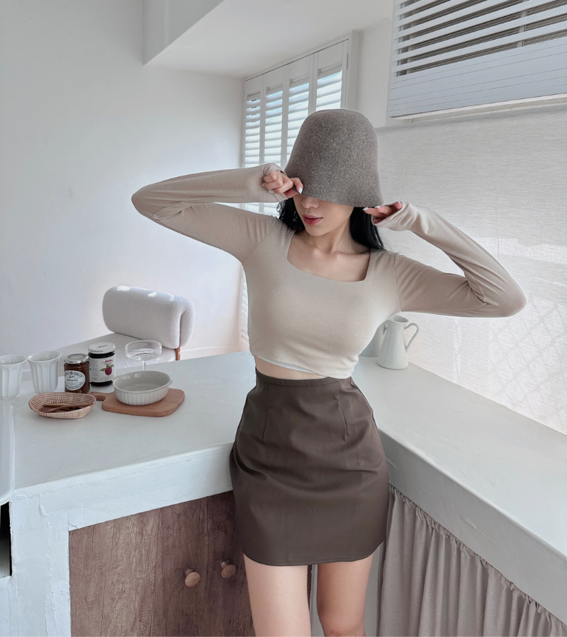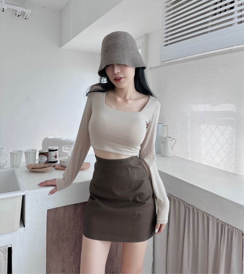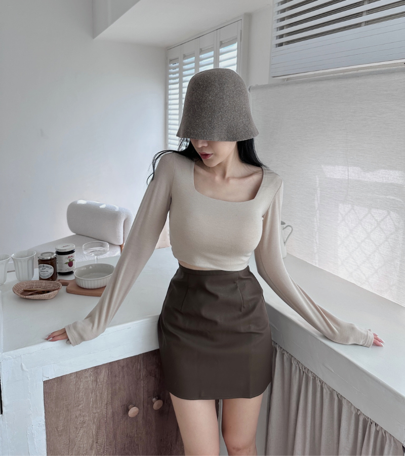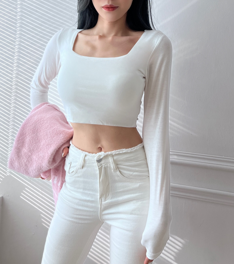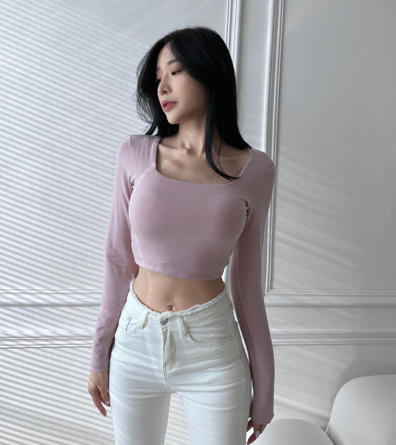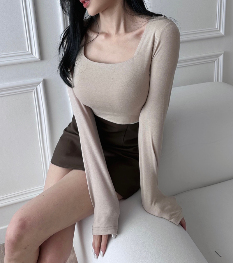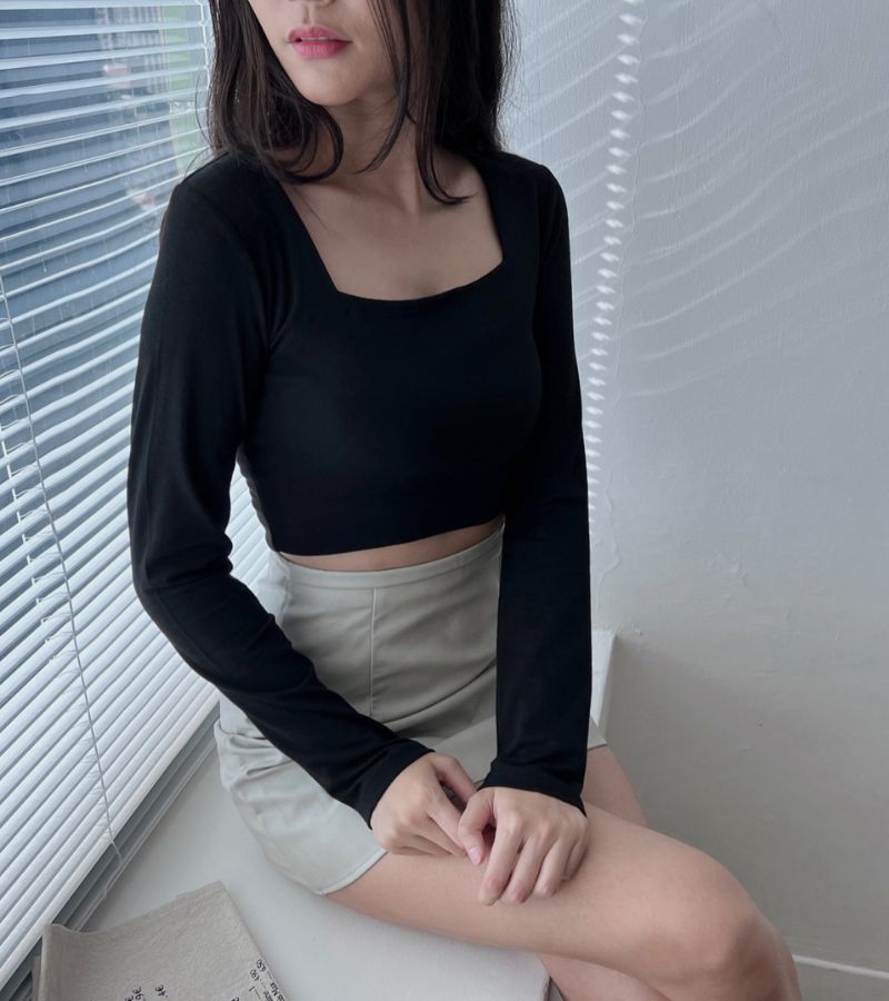 【內行人必帶】DOMISS自訂-方領短版莫代棉長袖上衣-4色(現貨)