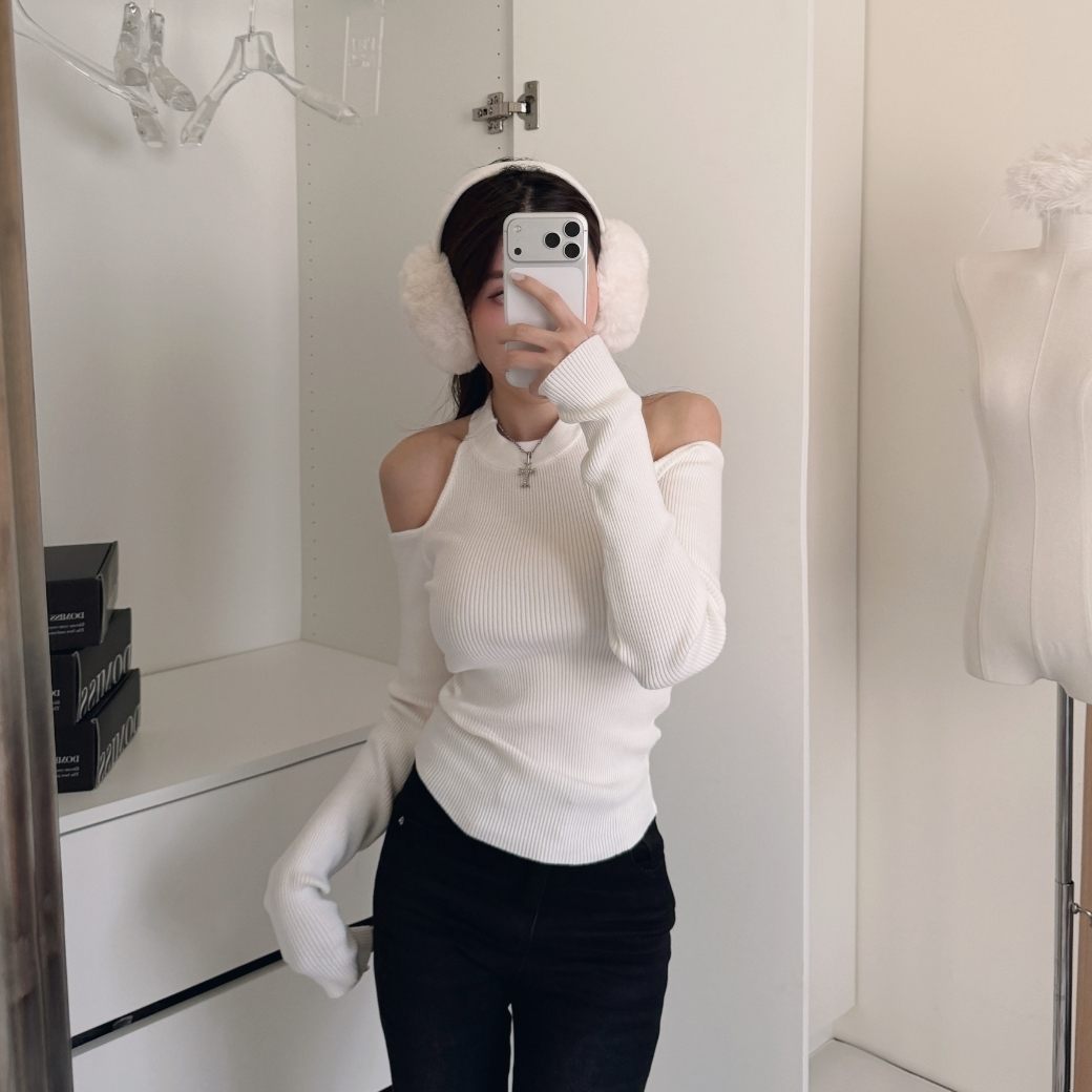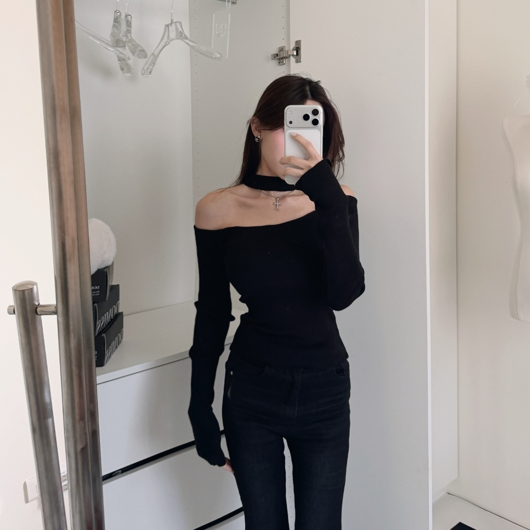 也能調整為優雅的一字領,微露鎖骨,散發迷人的純欲氛圍。