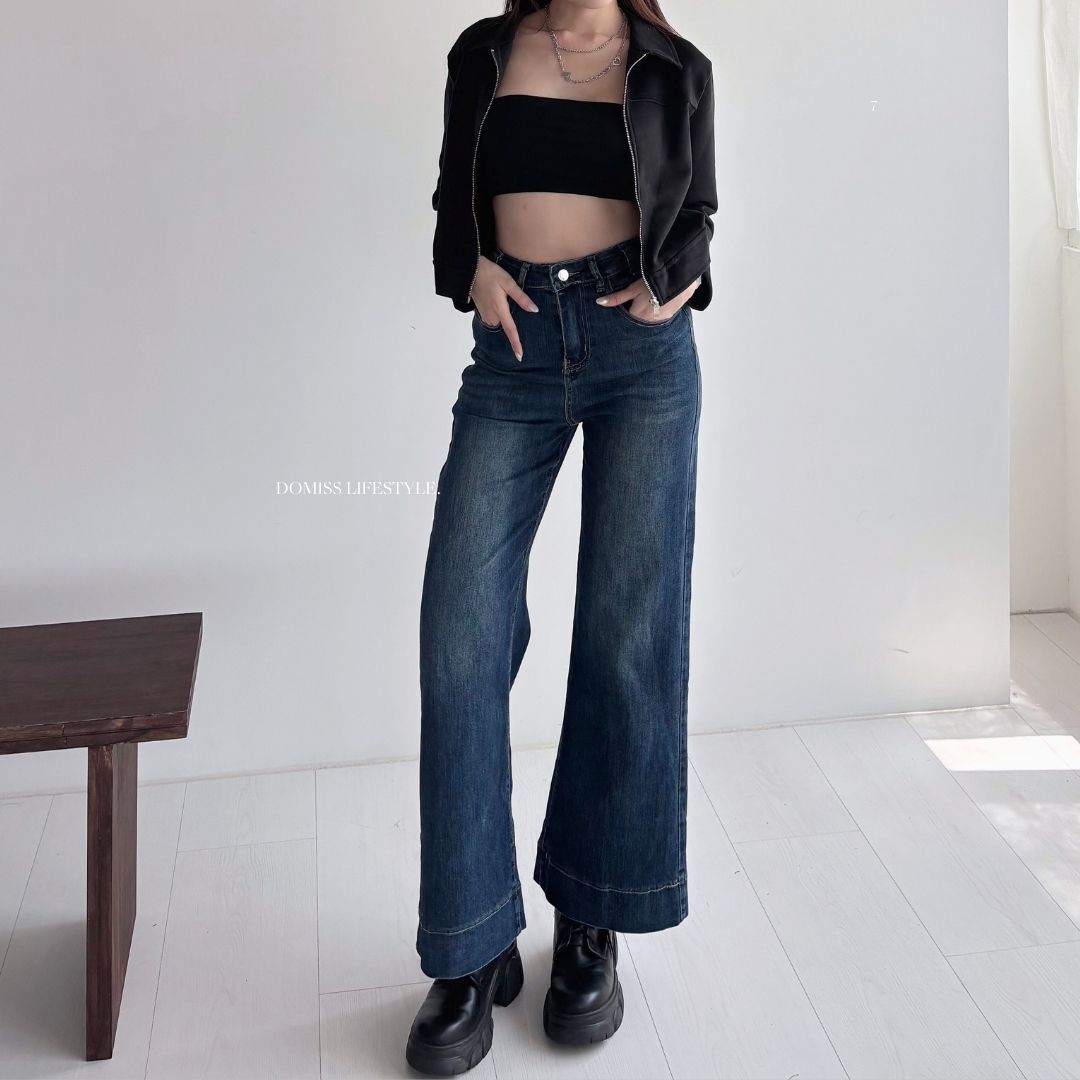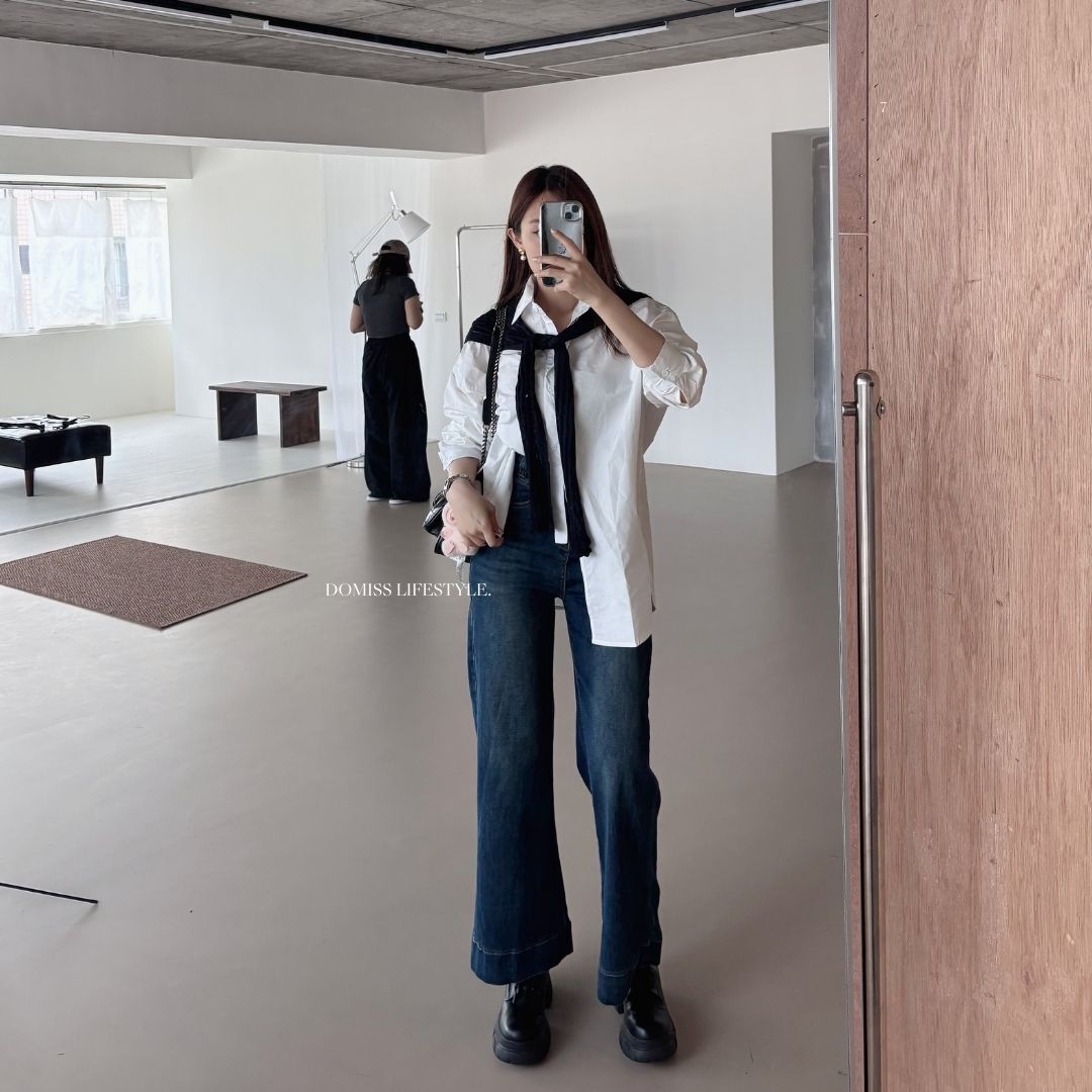微喇叭褲管修飾腿型,顯瘦又俐落。