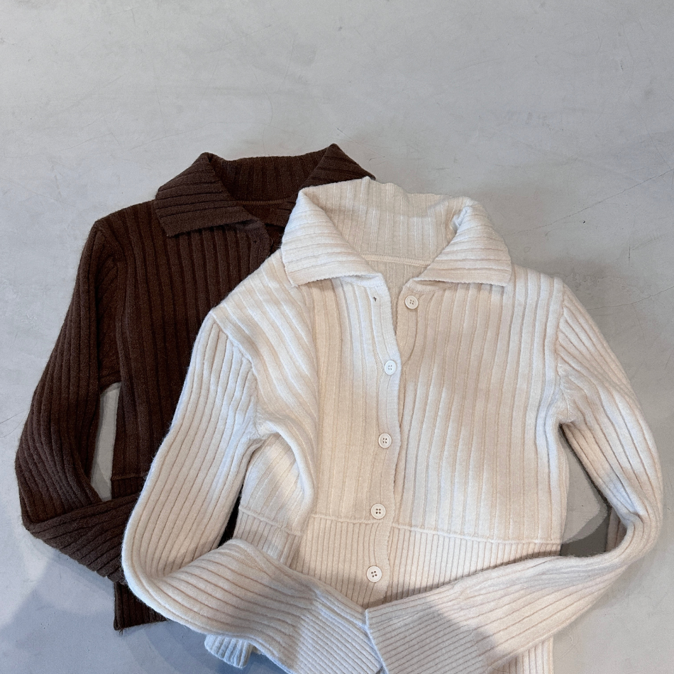 DOMISS質感兔絨POLO領針織排釦毛衣
