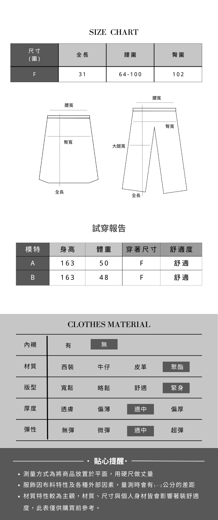 <尺寸>F全長31 腰圍64-100 臀圍102 cm