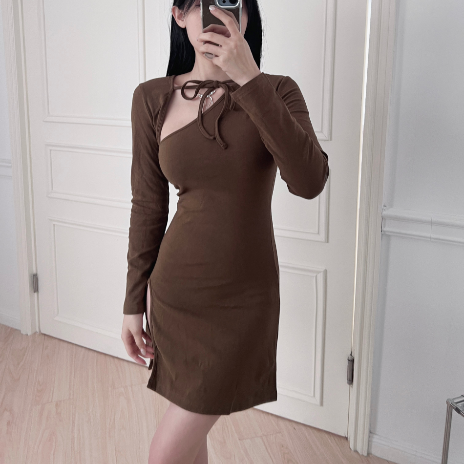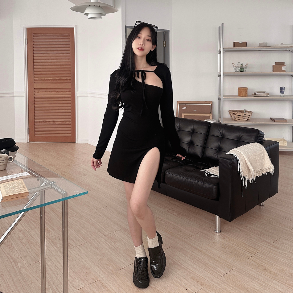 綁帶小開衫+洋裝兩件套