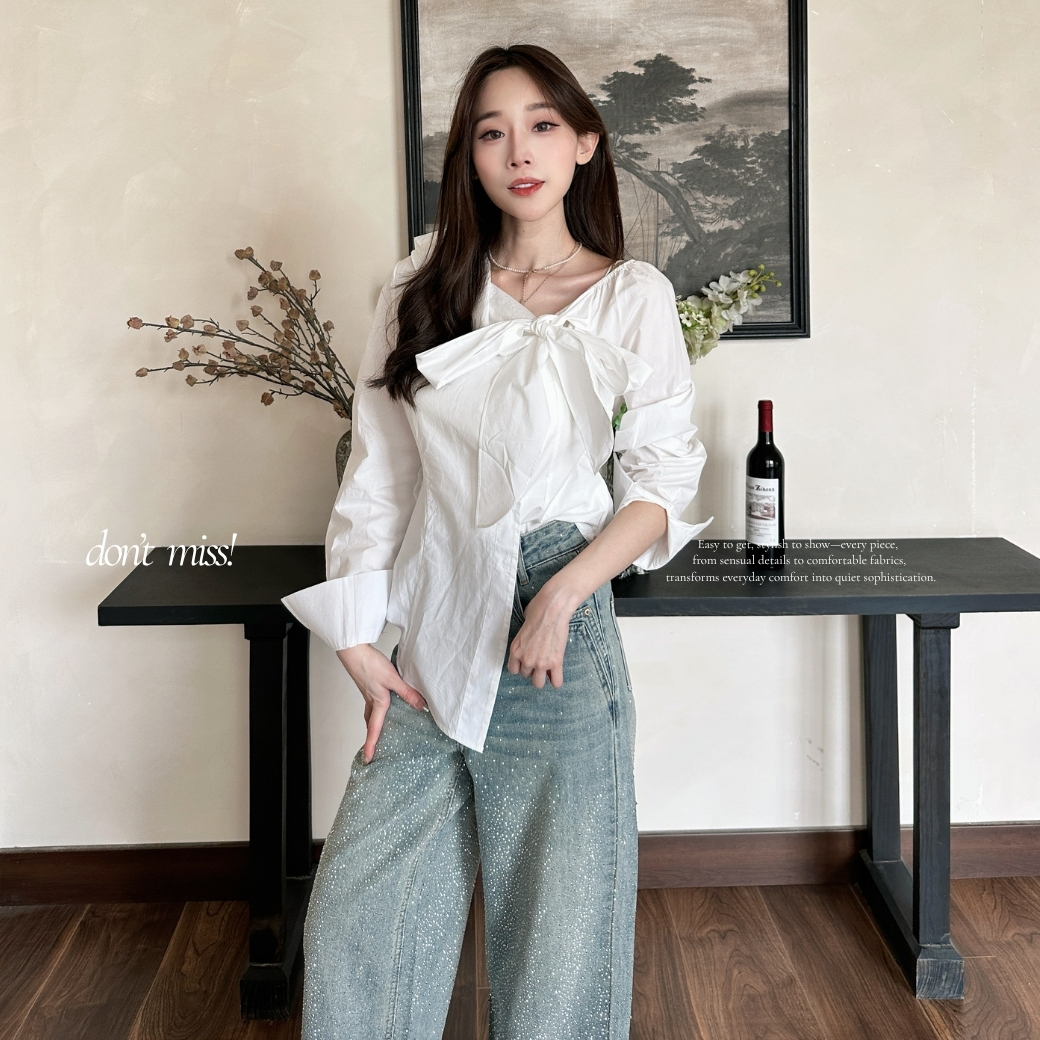 微方領剪裁露出鎖骨線條,