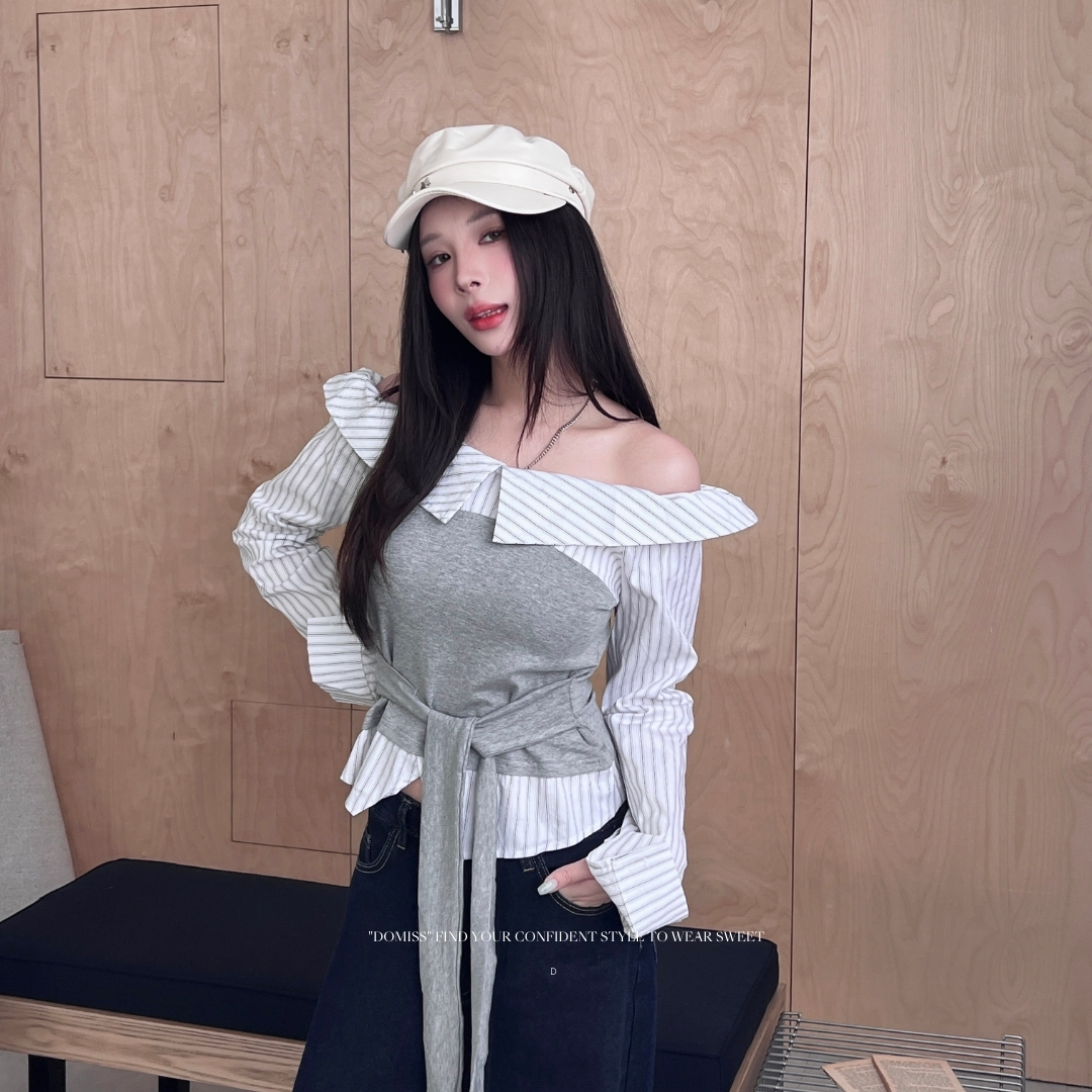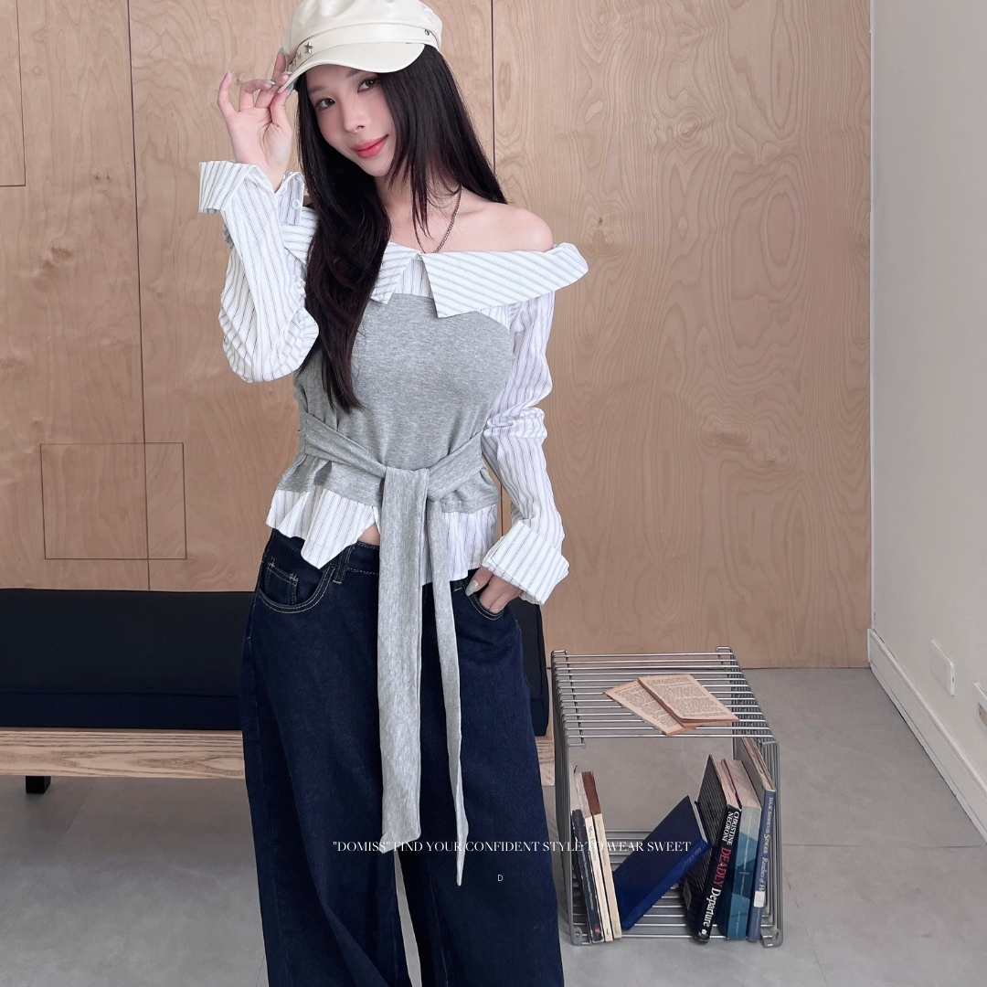 ✔ 時尚拼接感:條紋襯衫+背心假兩件設計,層次感拉滿