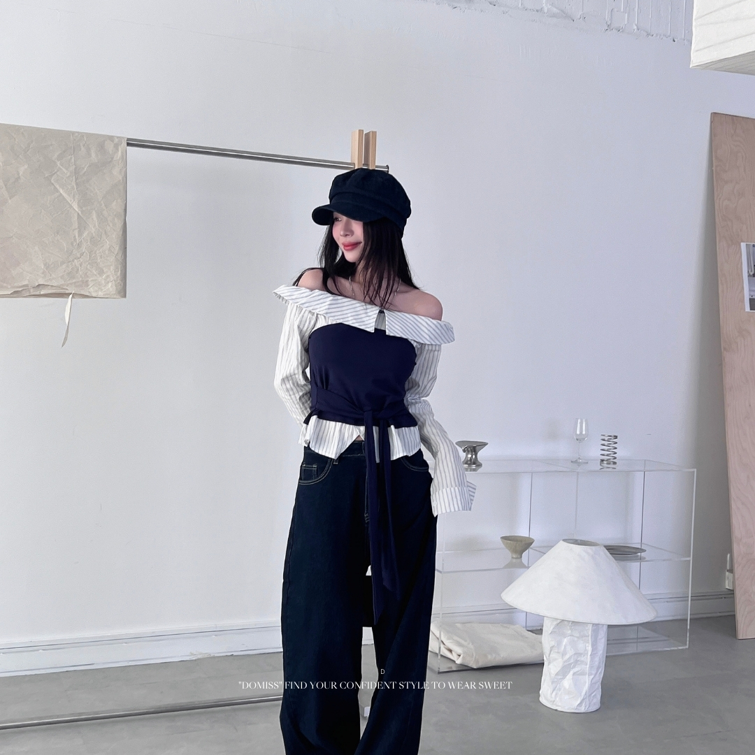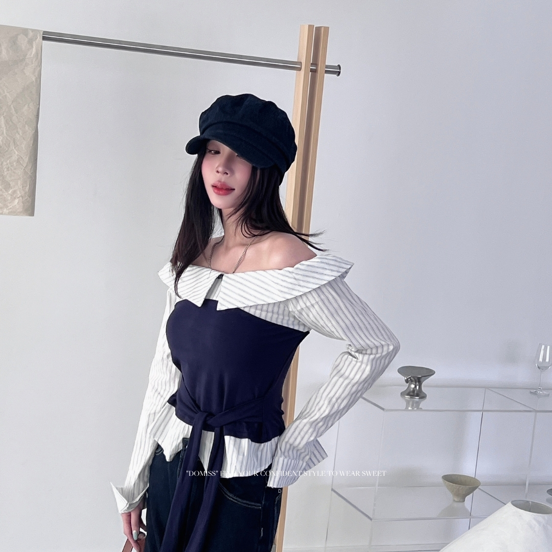 ✔ 露肩一字領:微露香肩鎖骨,純欲氛圍剛剛好