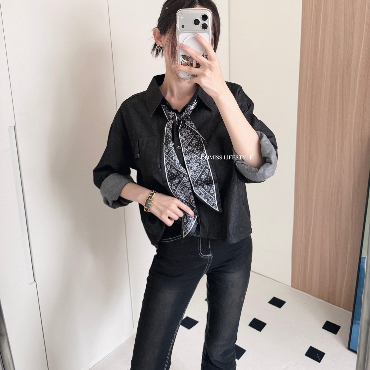 俐落仿牛仔外套: 經典的襯衫版型,選用高品質仿牛仔面料,手感紮實且具備自然的挺度,當外套或單穿都極具個性!