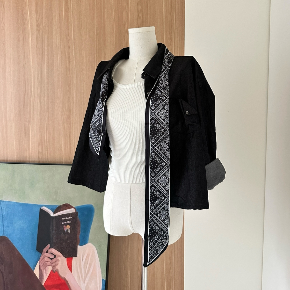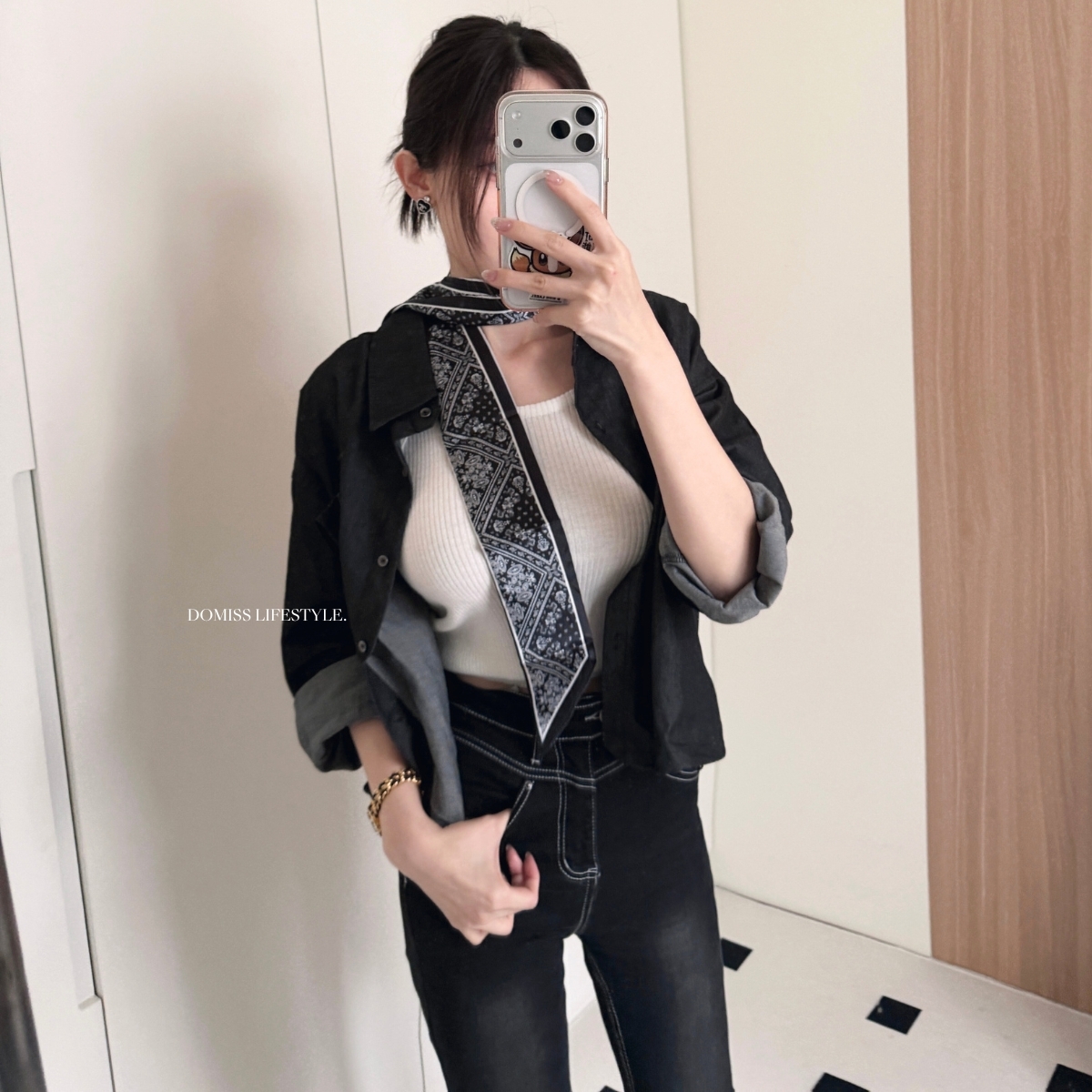配上絲巾與背心的點綴,讓簡約的黑白色系瞬間穿出法式高級感: