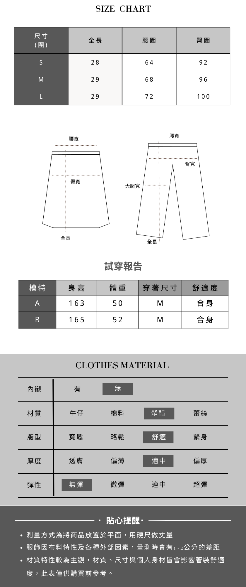 S號:全長28 腰圍64 臀圍92 cm