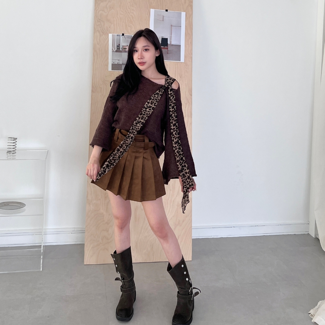 不是一般的百褶裙,是帶點野性質感的「麂皮褲裙」。