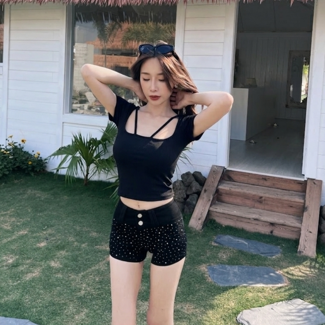 領口的細繩設計巧妙點綴鎖骨,不需飾品就能穿出層次感。