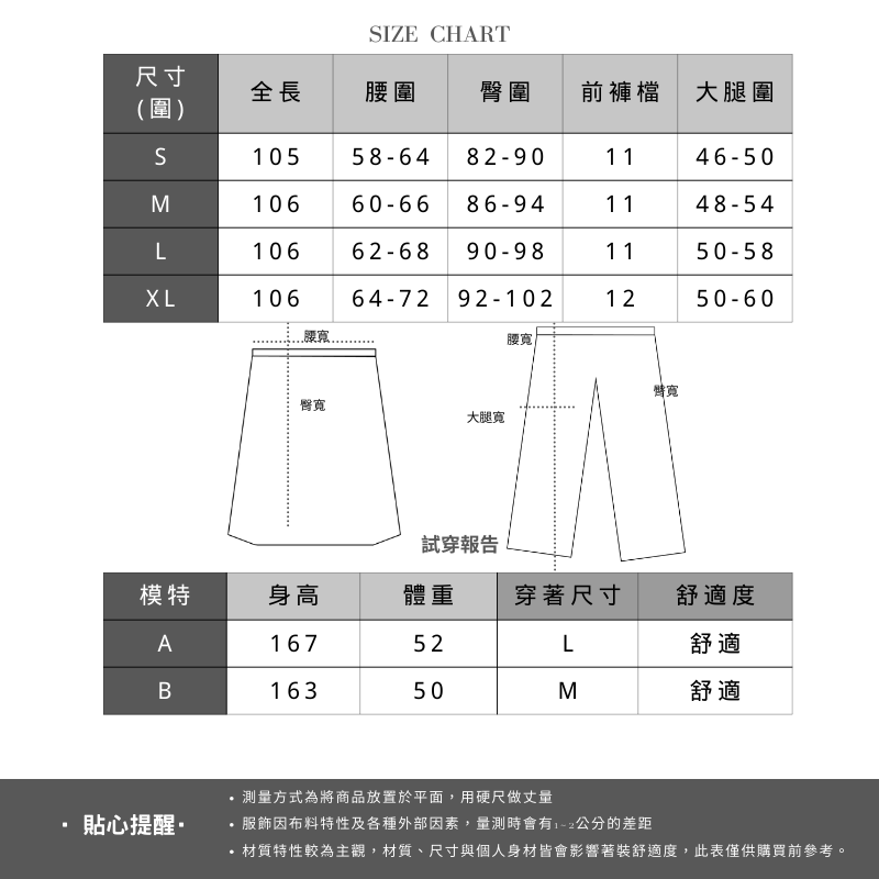 XL號:全長106 腰圍64-72 臀圍92-102 前襠長12 腿圍50-60 cm