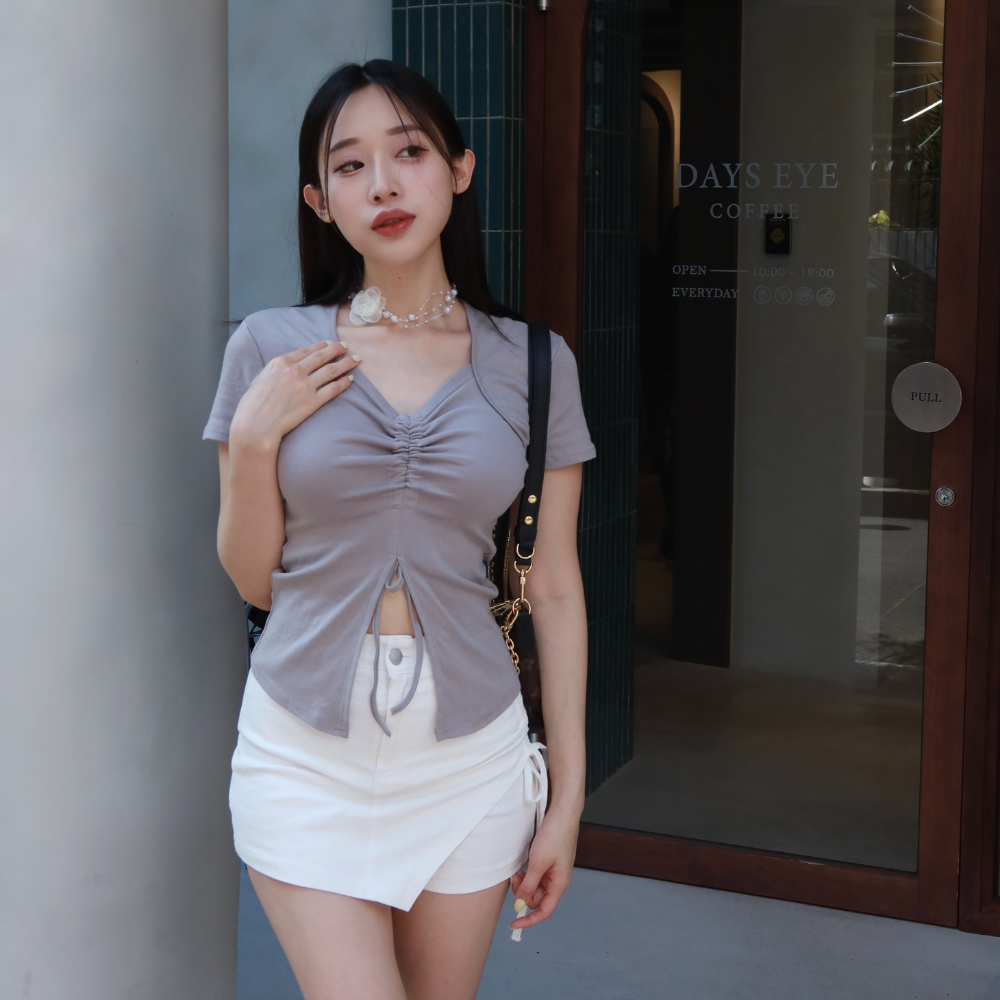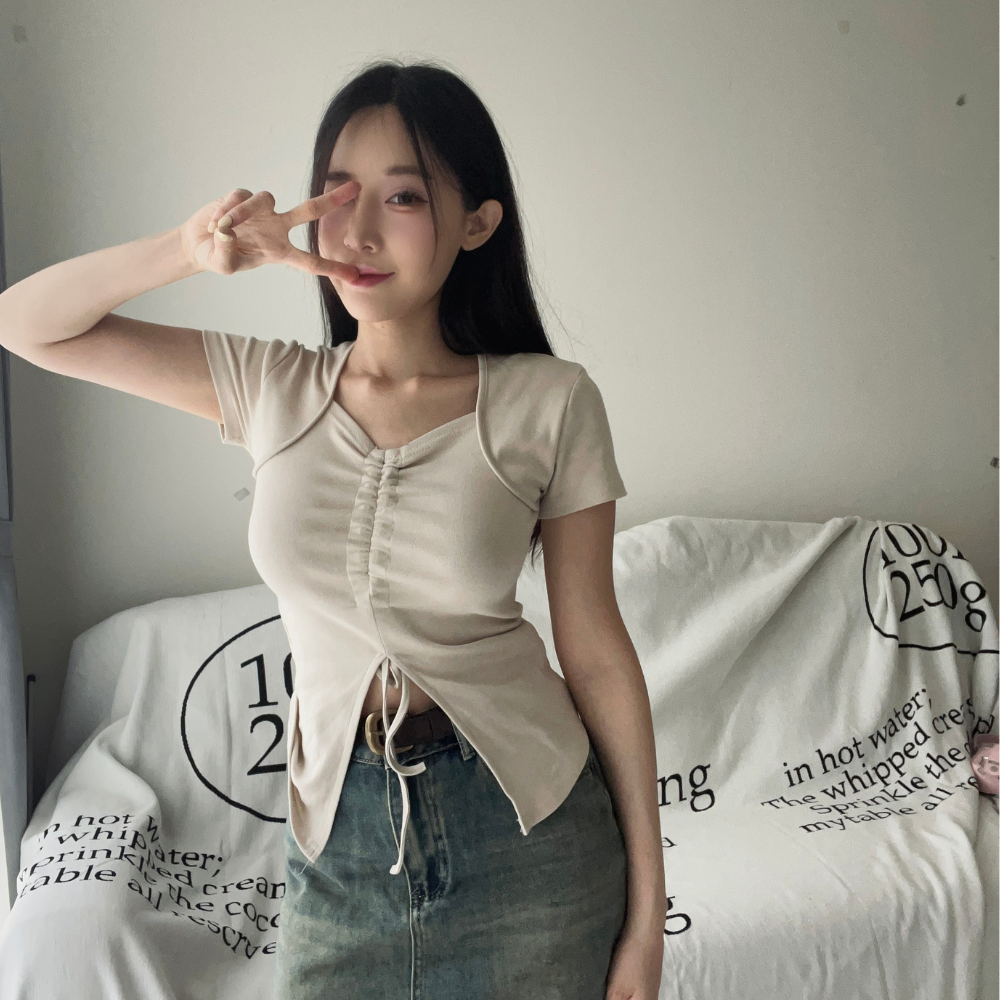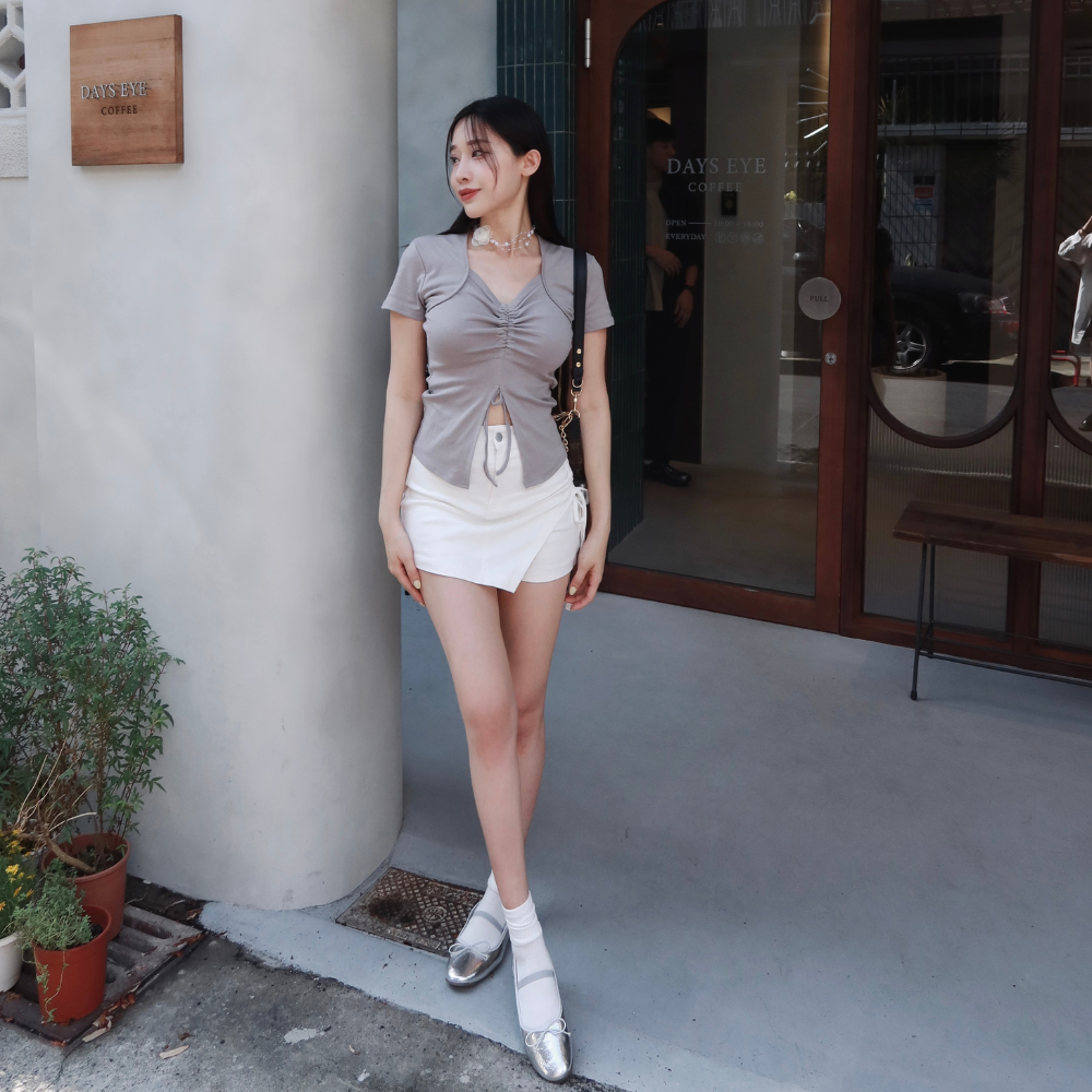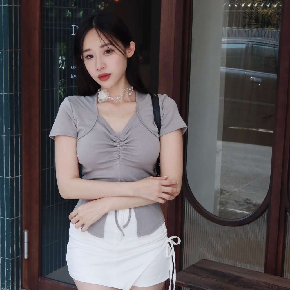 <尺寸>F 全長52 肩寬38 胸圍70-82 腰圍62-70 袖長14 cm