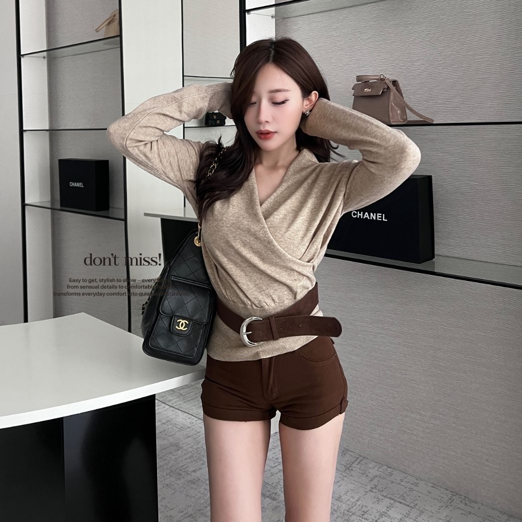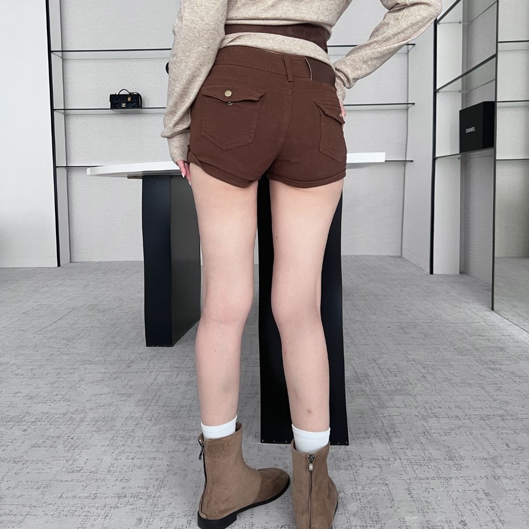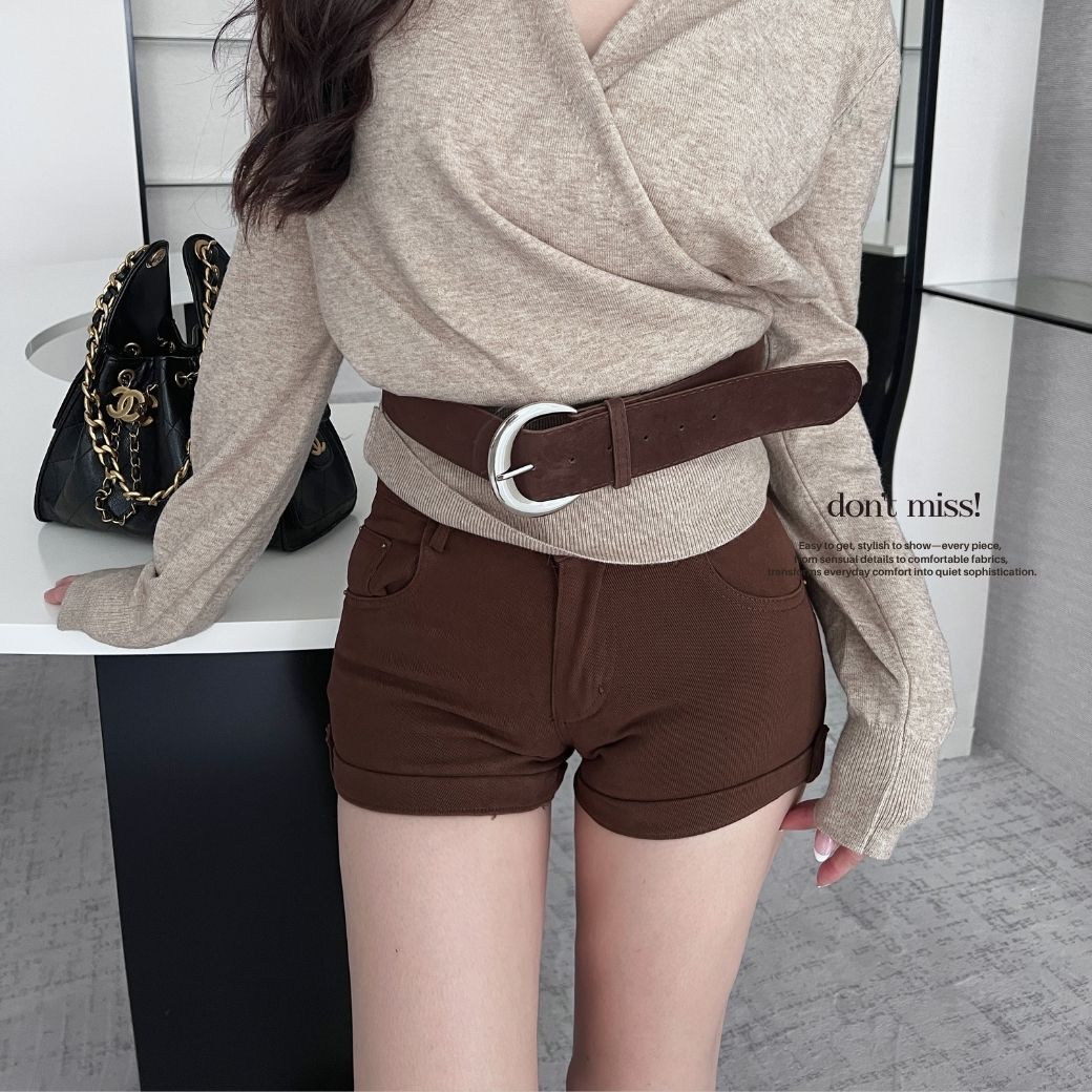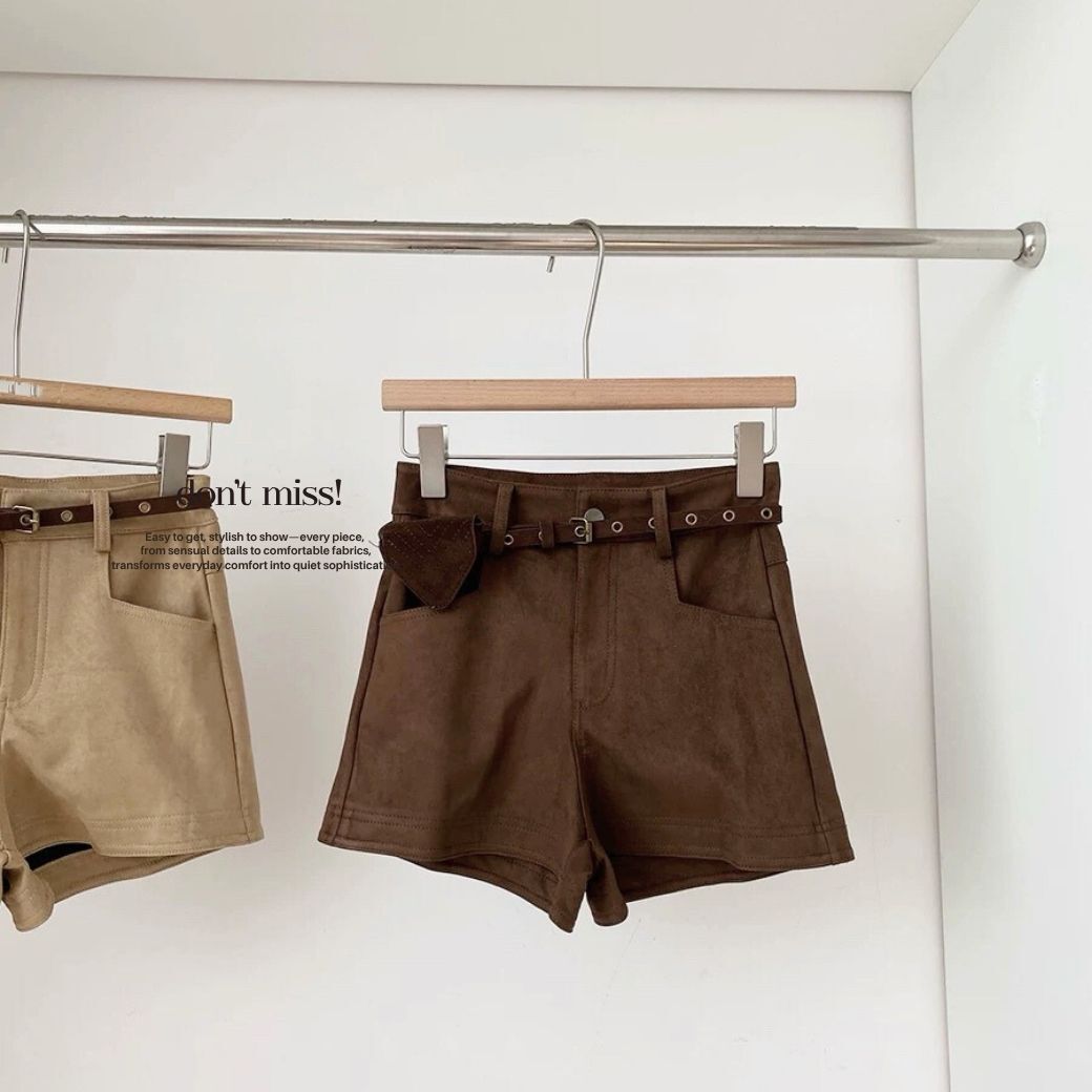 高腰麂皮短褲+附腰帶,