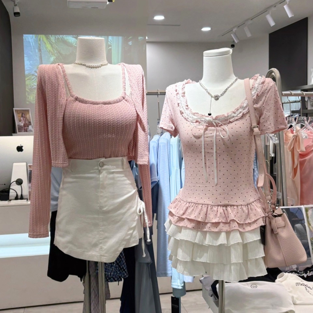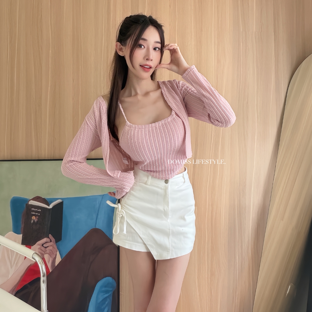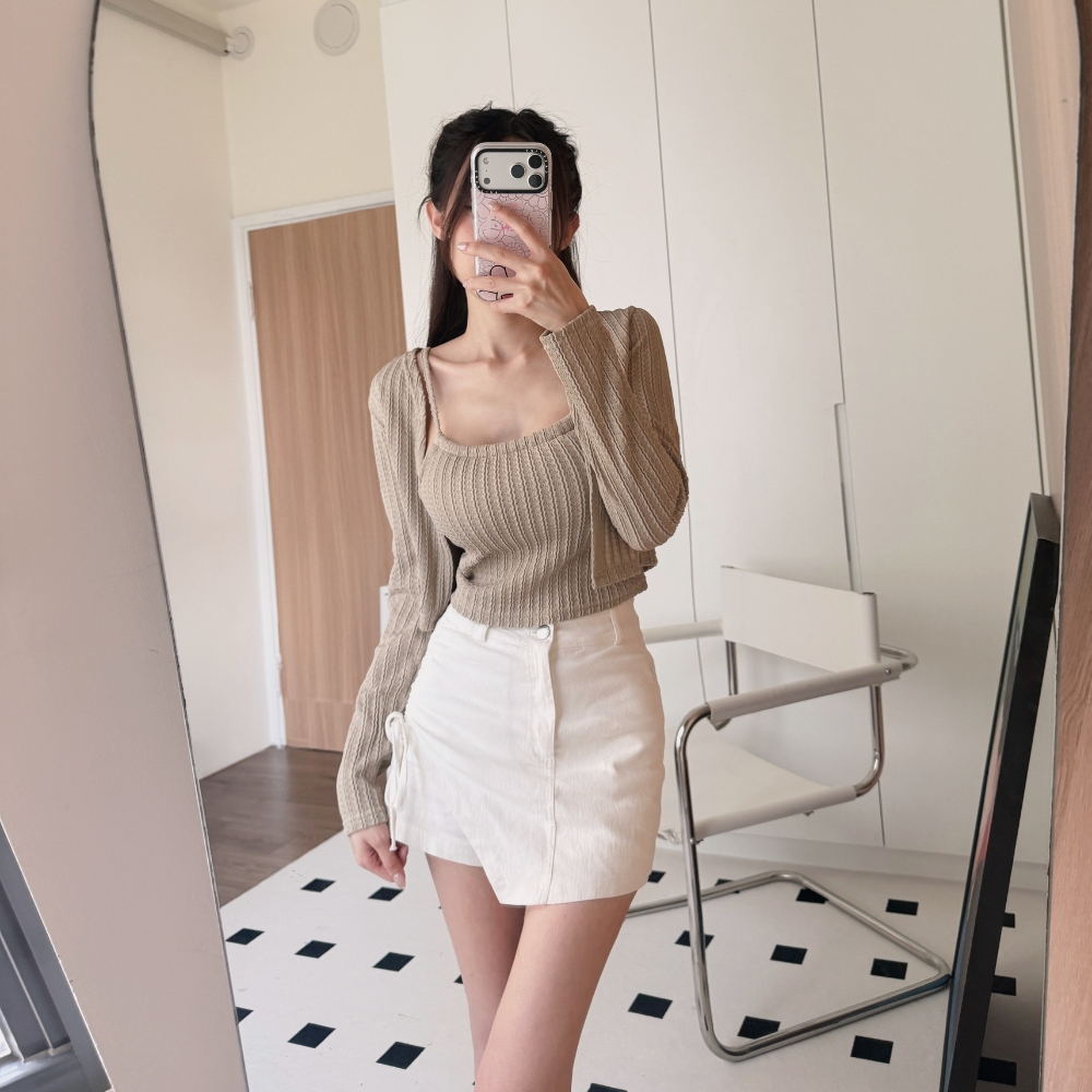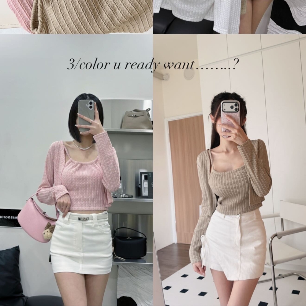 外面再搭一件短版針織外套,瞬間多一點溫柔感✨