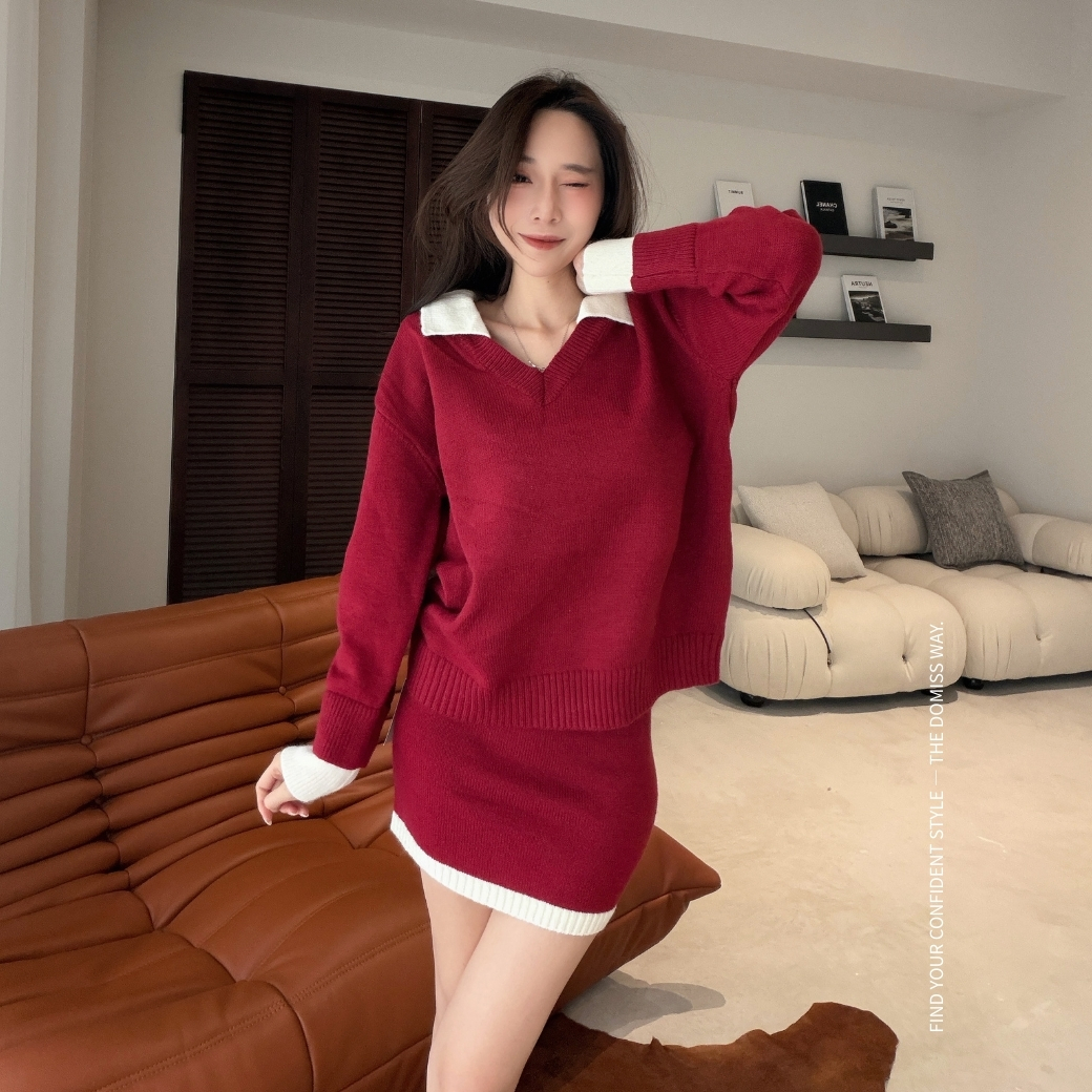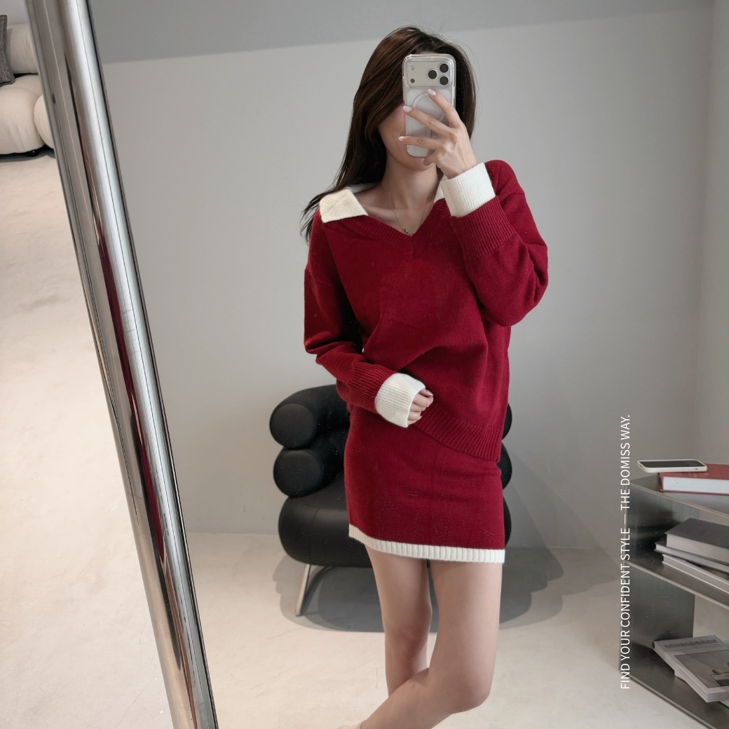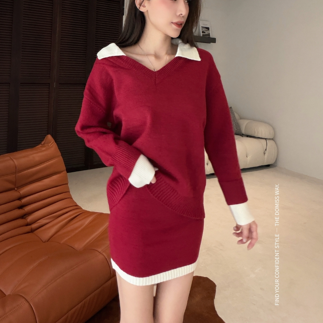 寬鬆翻領毛衣,修飾肩線與上身比例