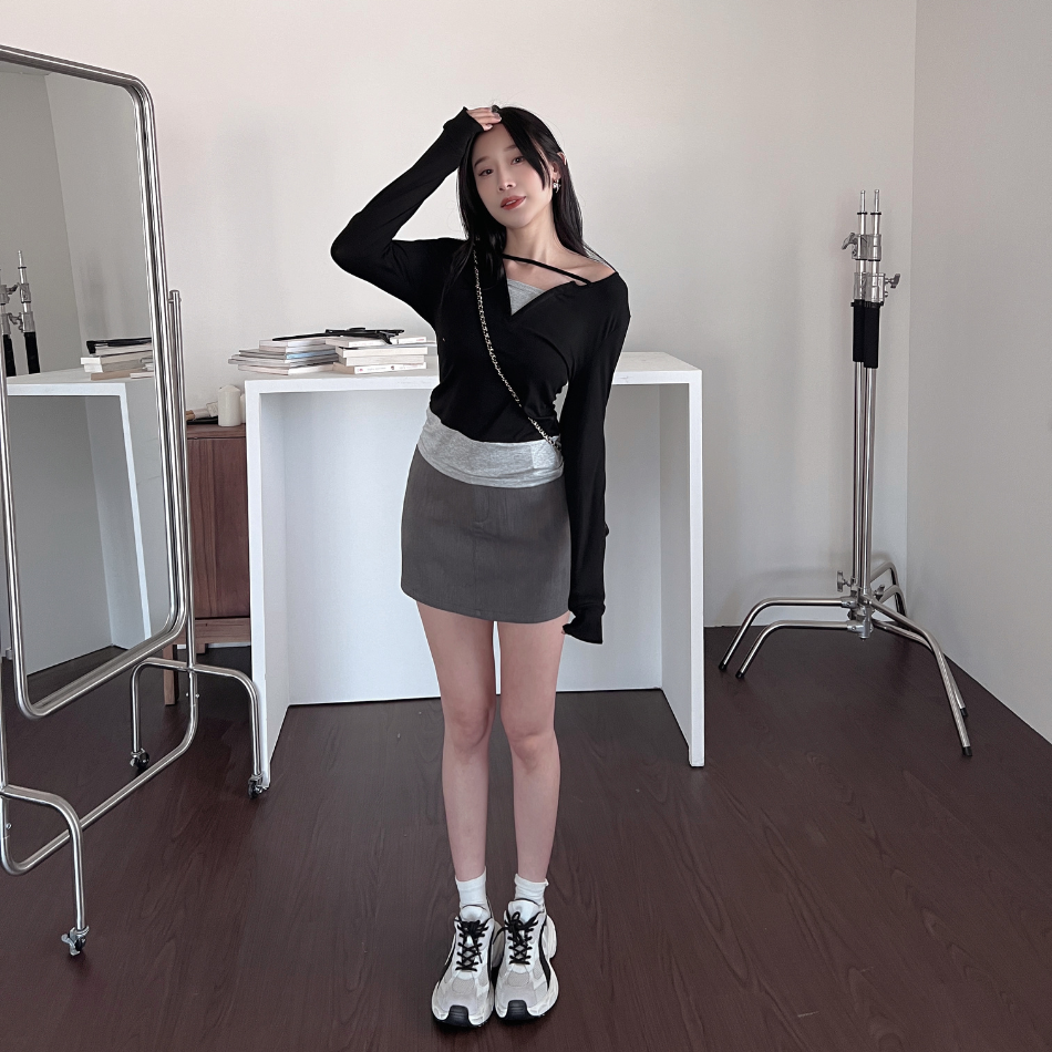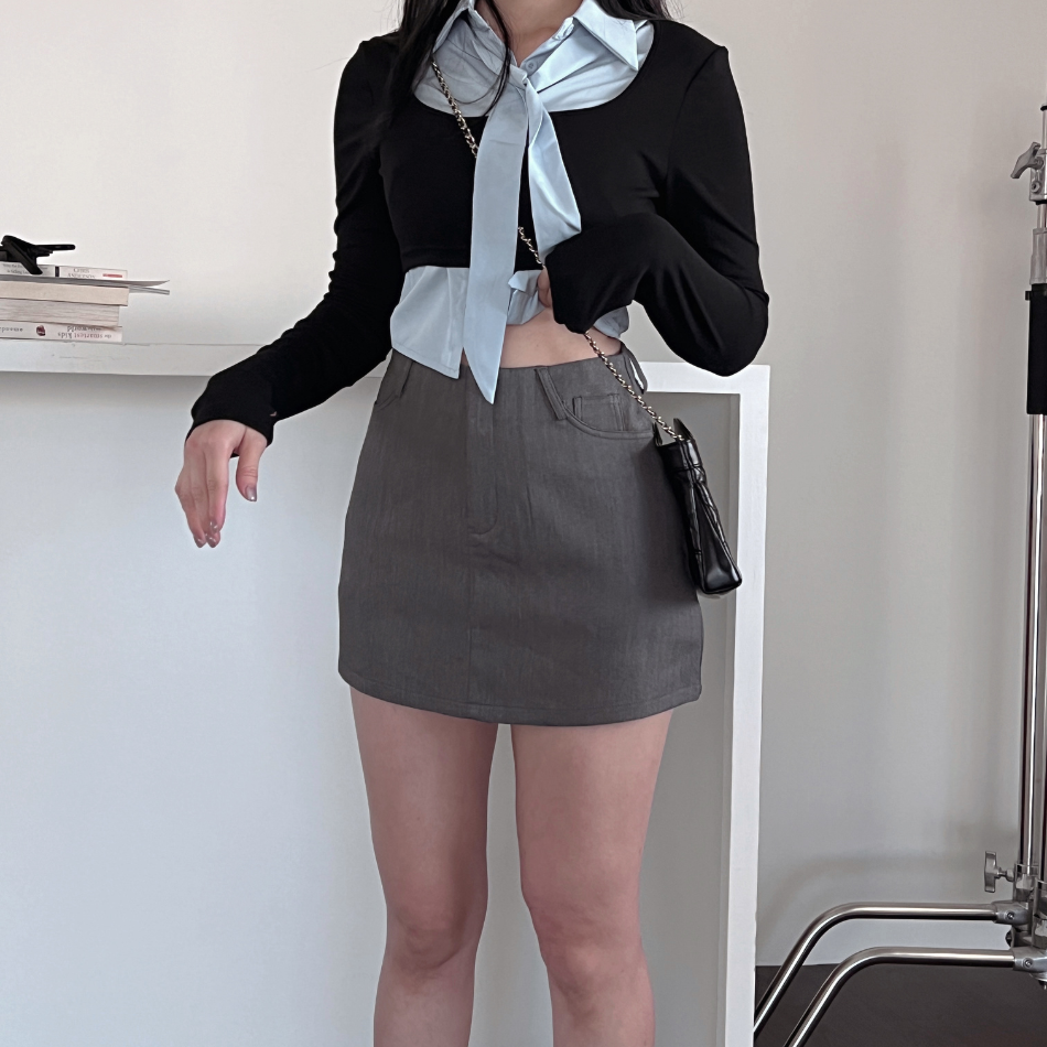 【miu系穿搭】DOMISS訂製-百搭西裝短裙 miu風 西裝褲裙