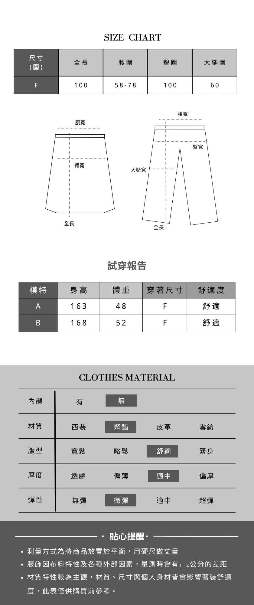 全長100 腰圍58-78 臀圍100 腿圍60cm