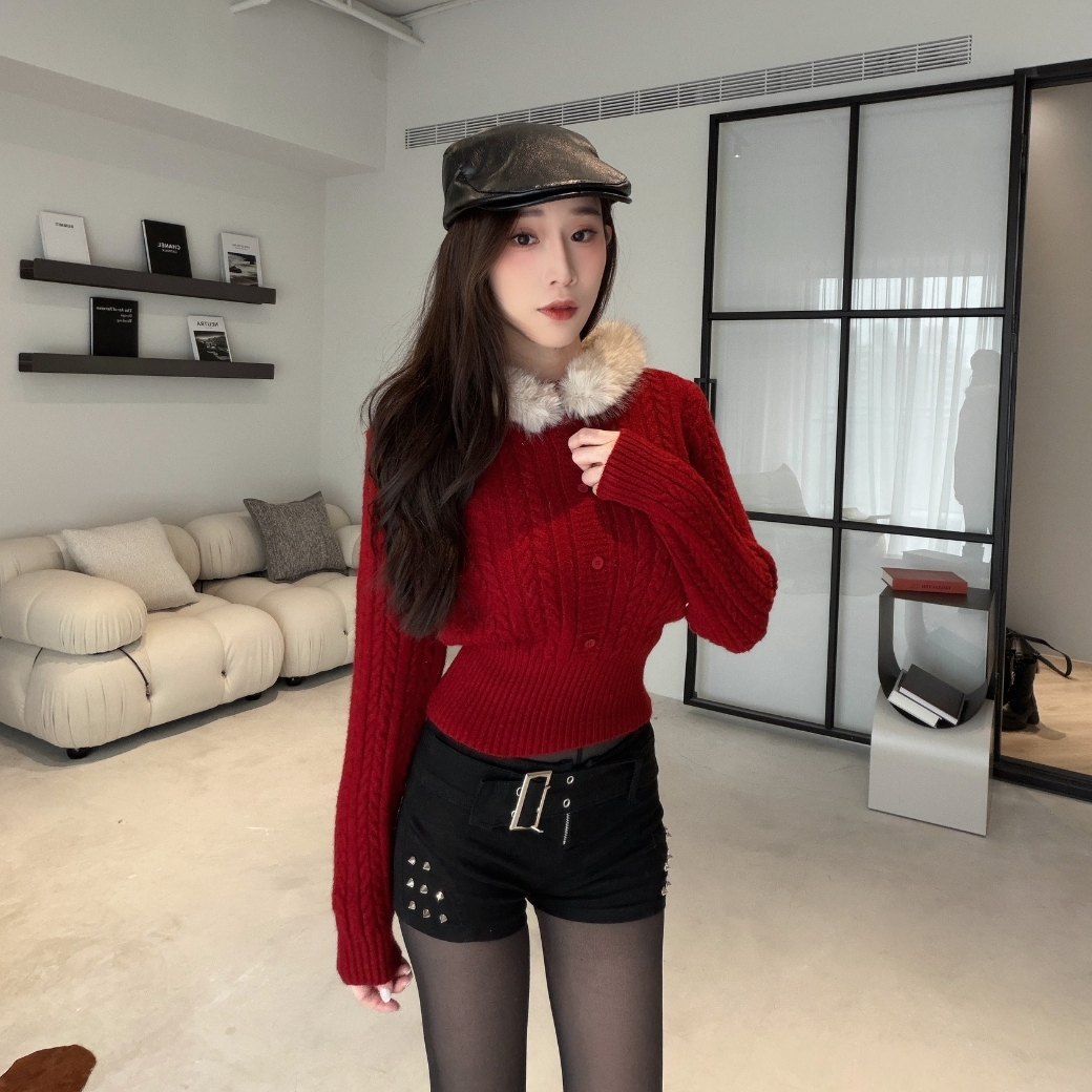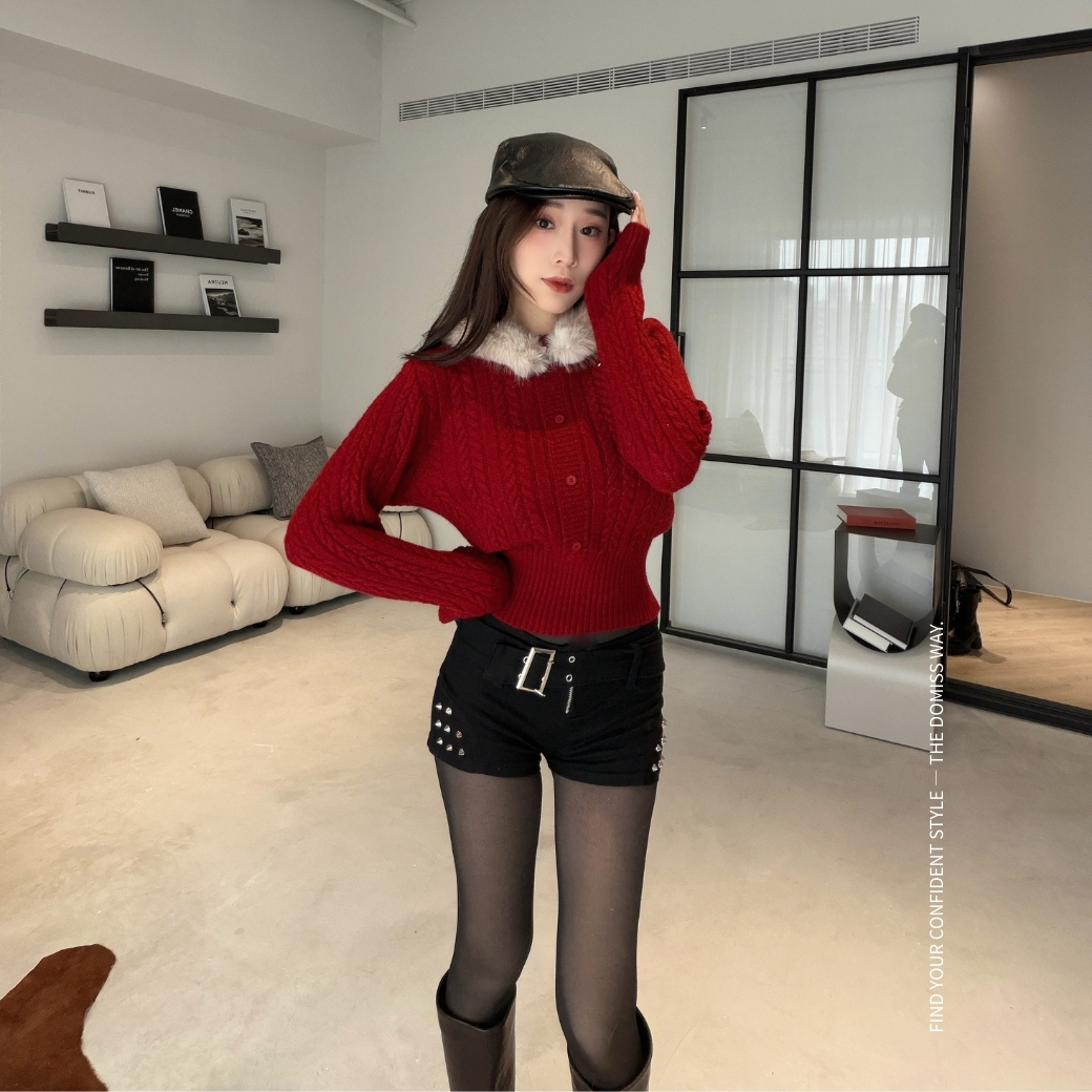 毛毛領+修身版型
