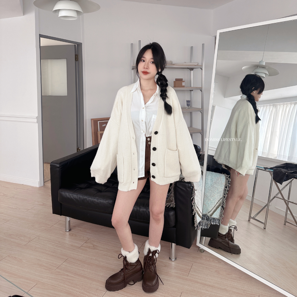 落肩的開衫外套更修飾
