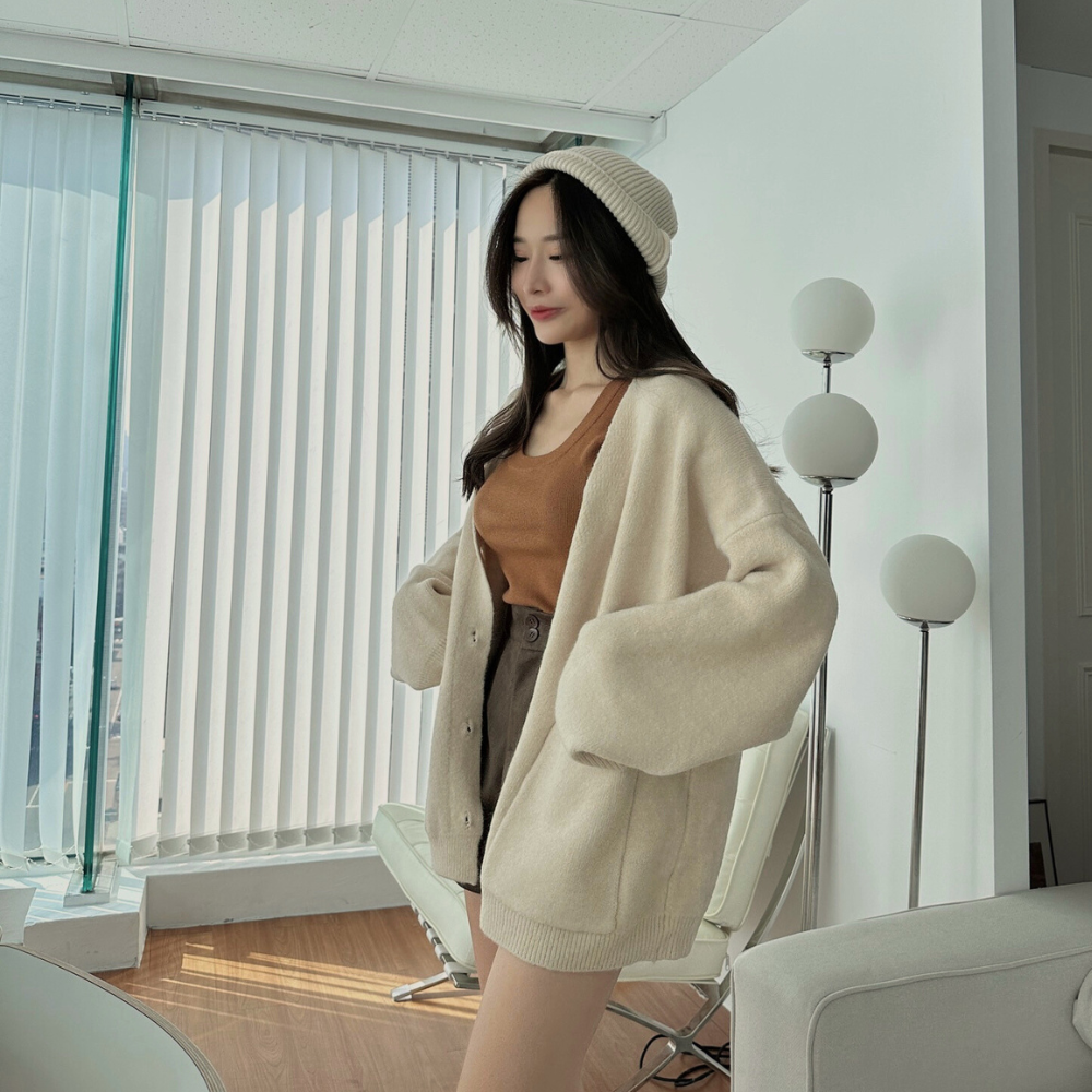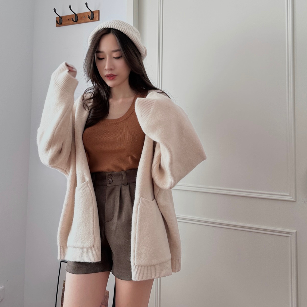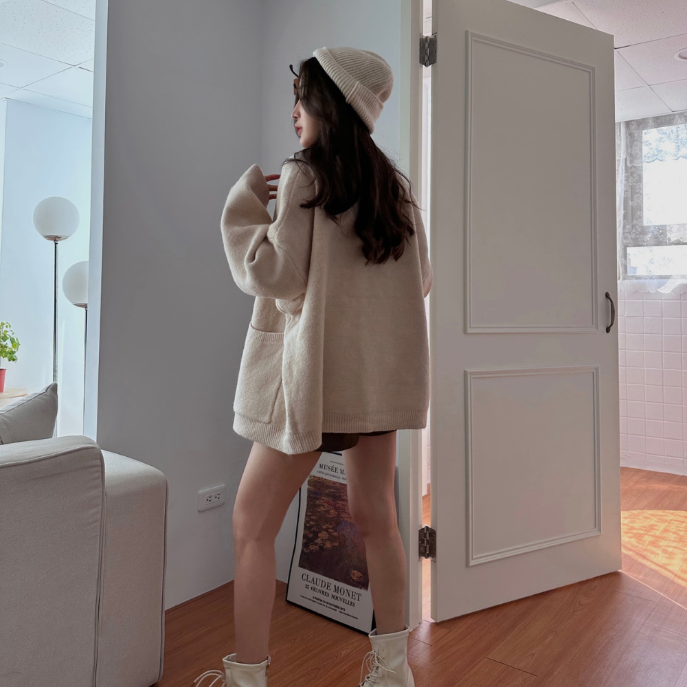 主推! 重磅雙口袋毛衣外套 同配色釦超Q 寬鬆外套-2色