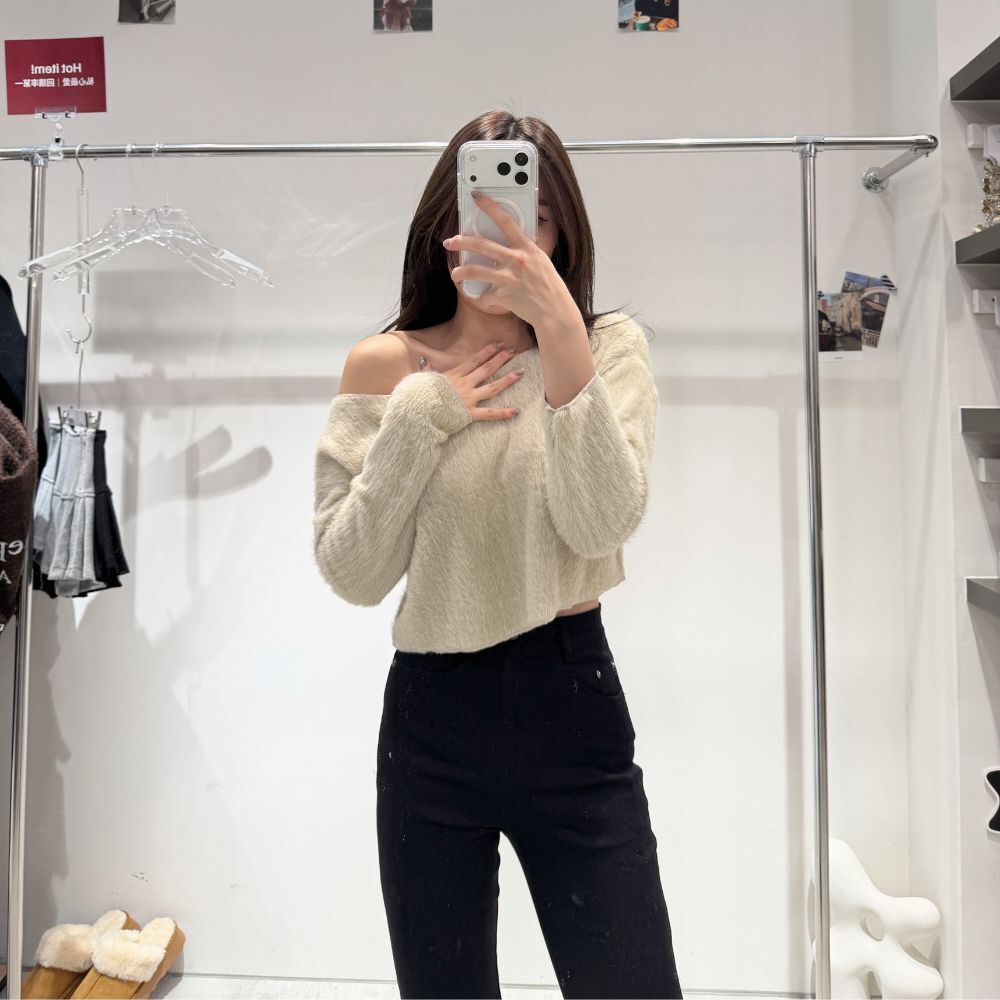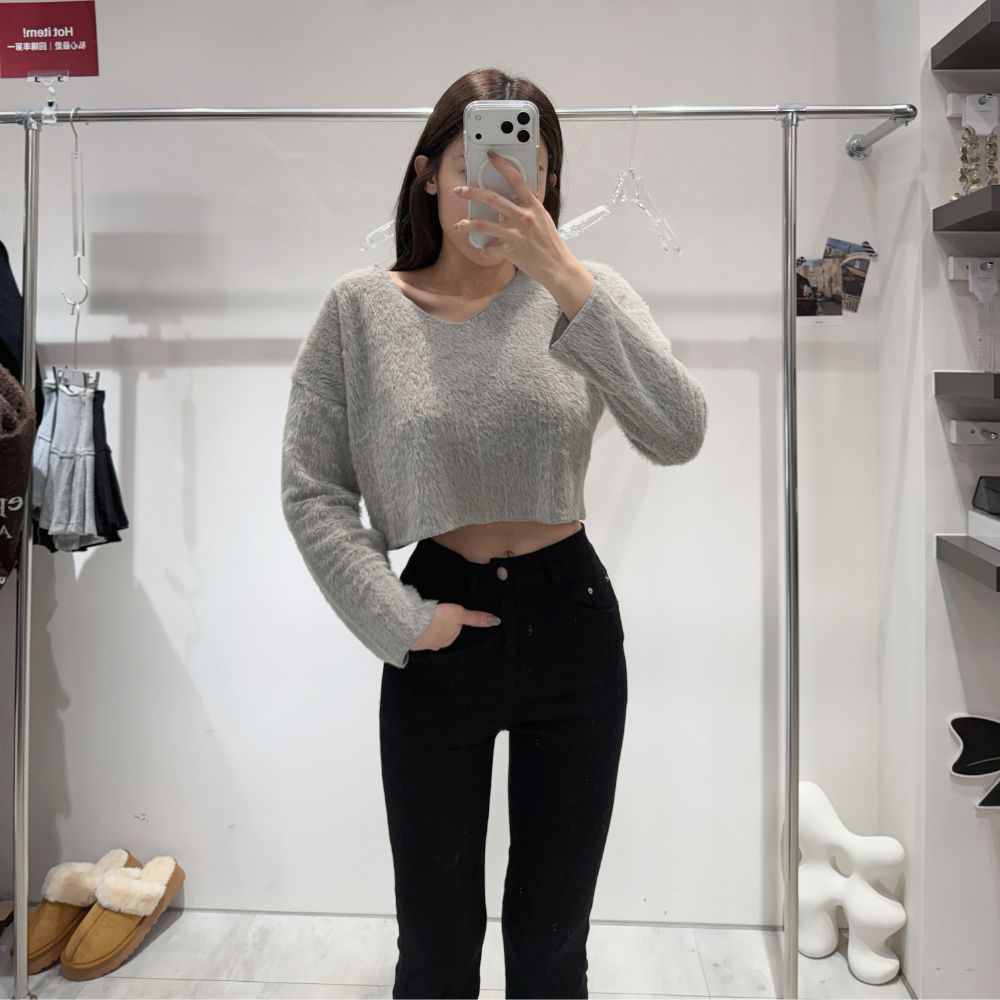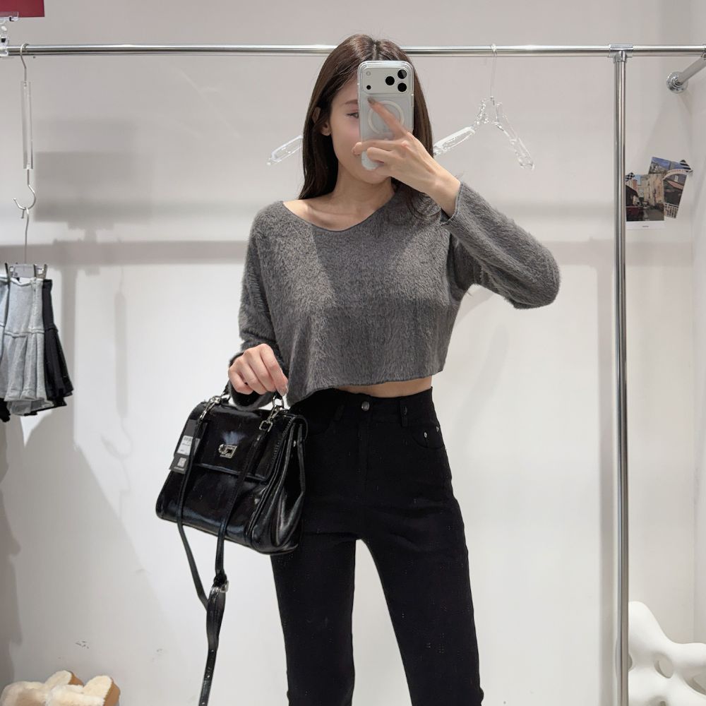 【門市爆款】DOMISS自訂-毛茸茸短版上衣 毛衣(現貨)