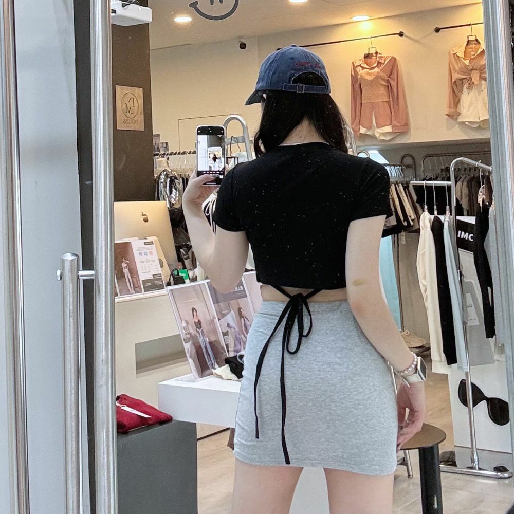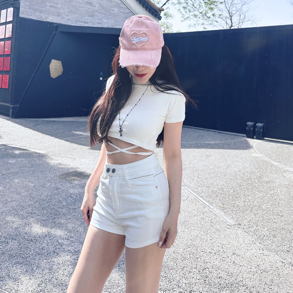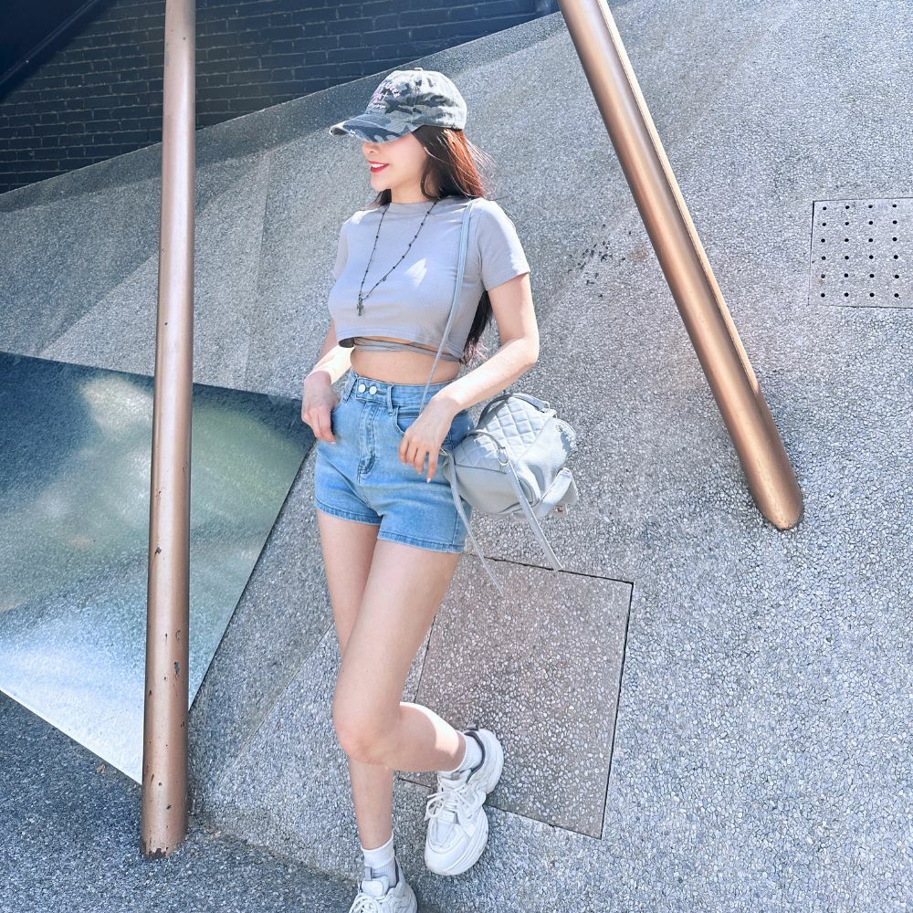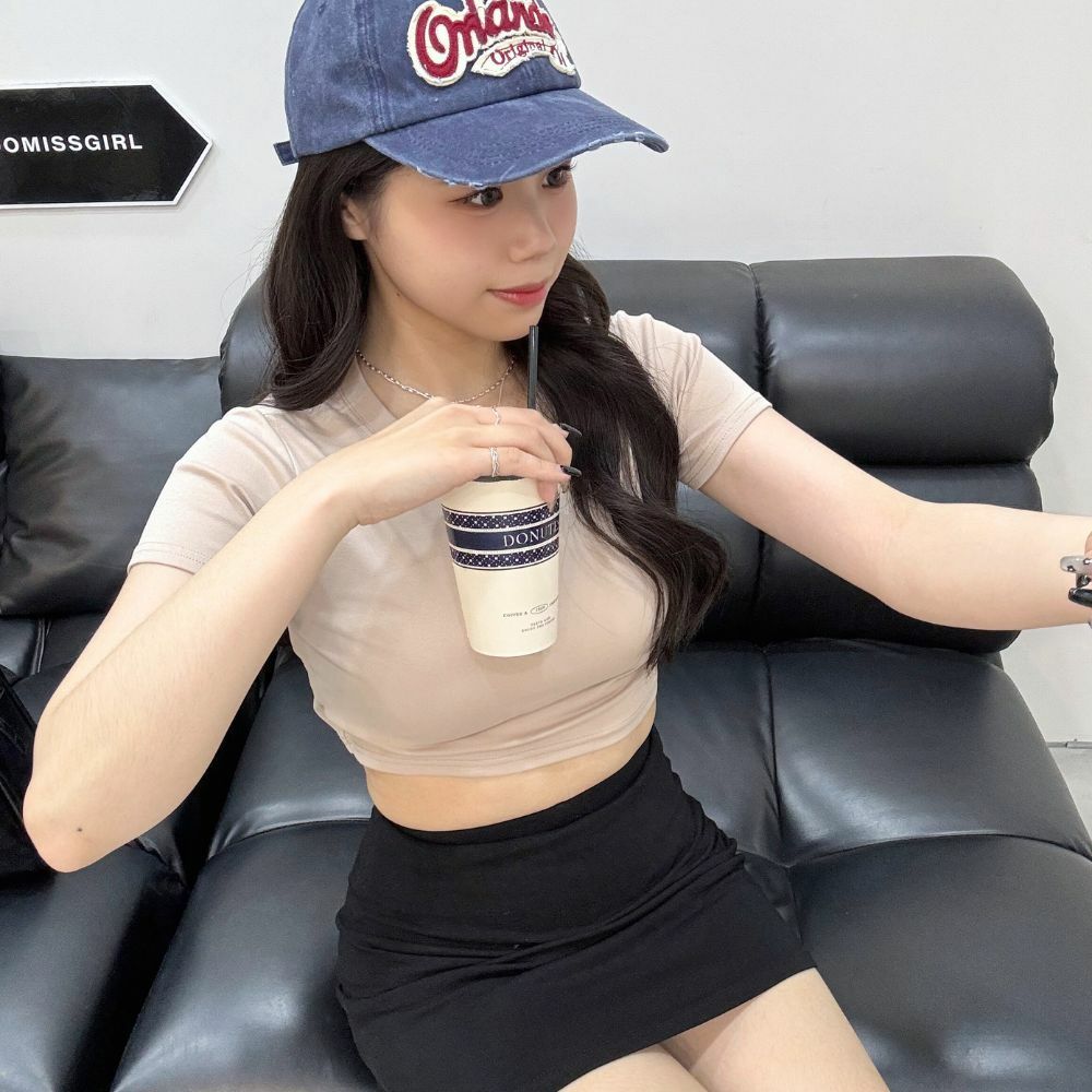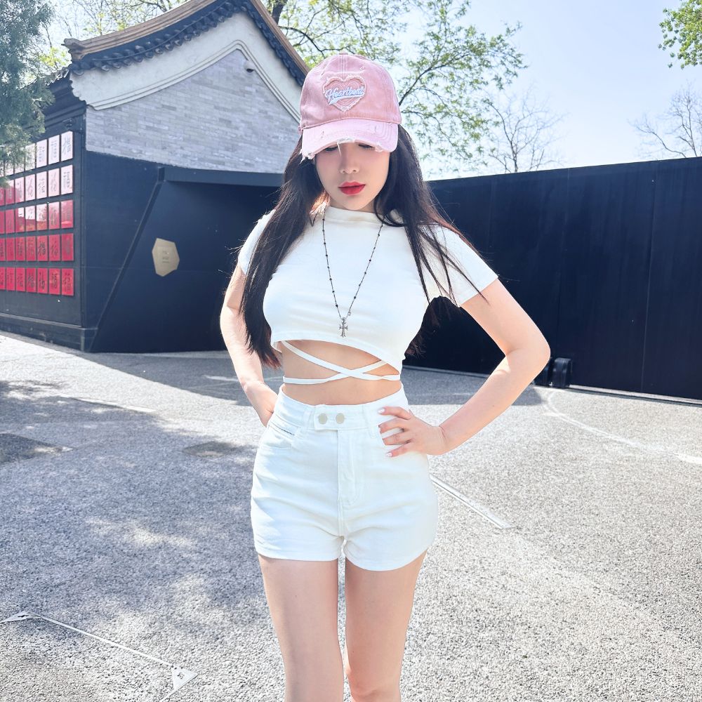 圓領短版剪裁,完美露出腰線,